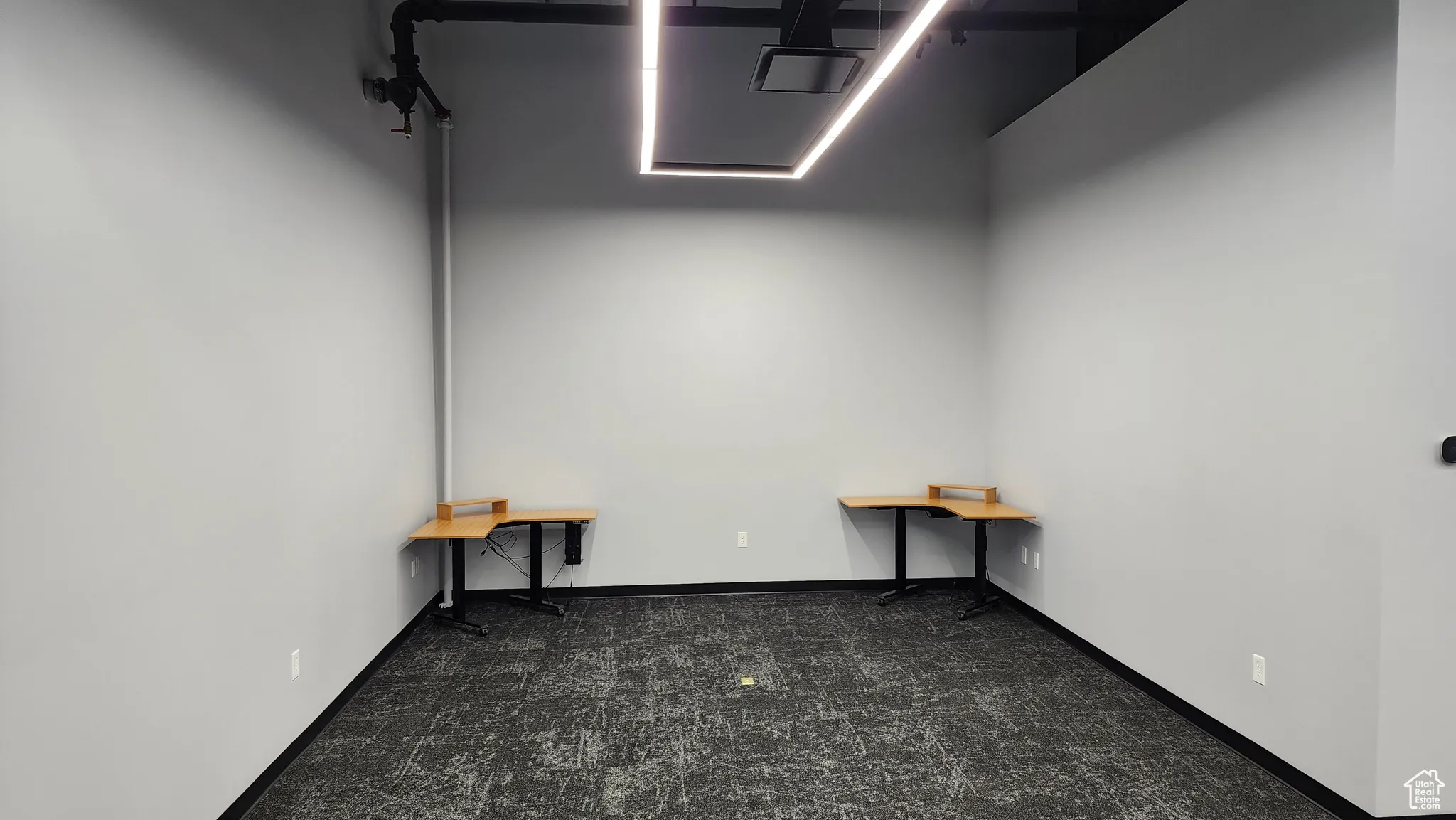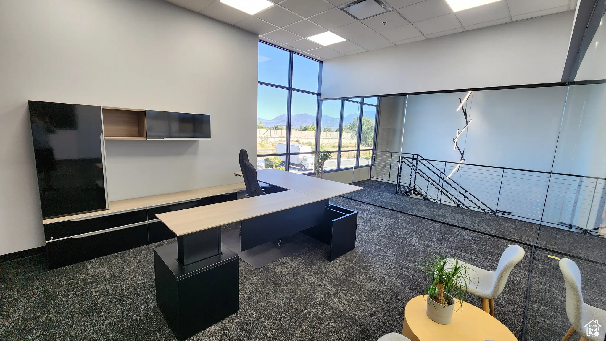 OFFICE SQ/FT: 3,100 (approximately 1,550 main floor & 1,550 upstairs) WAREHOUSE SQ/FT: 4,200 TOTAL: 7,300 SF Incredible office & warehouse unit with 27′ high warehouse ceilings clear height, truck access, 16′ ground level door, and large windows with lots of natural light. This building offers a two story office with modern glass walls, modern lights, high end bathroom finishes, and powder coated steel. Would be an amazing building for either an investment or an owner occupied user. Centrally located in Bluffdale right off of Bangerter Highway, in between Salt Lake County & Utah County. Perfect location for a small business. 480V power on the back panel. Warehouse lighting is run on 277v from the rear panel. Transformer up near office space to convert to 110v for main office panels. Extremely heavy duty 20′ tall C channel structural steel racking. Could be included with the sale if purchased separately. Full Facility Security System – Key Card door entry system. – 6 Cameras – Can have 24/7 Alarm Monitoring through Arco Alarm.