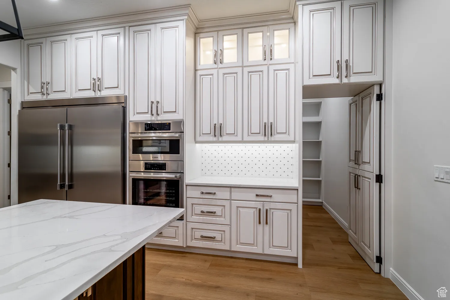 - Disposal, Closet: Walk-In, Gas Log, Range/Oven: Built-In, Oven: Double, Range: Countertop, Oven: Wall, Bath: Primary