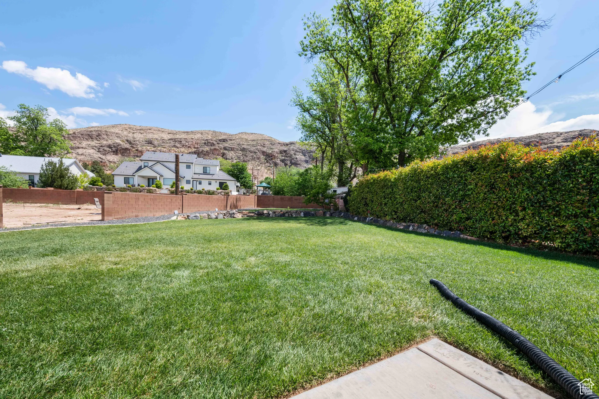 - Road: Paved, Sidewalks, View: Mountain, Curb & Gutter, Fenced: Part, Sprinkler: Auto-Full, Cul-De-Sac, Private