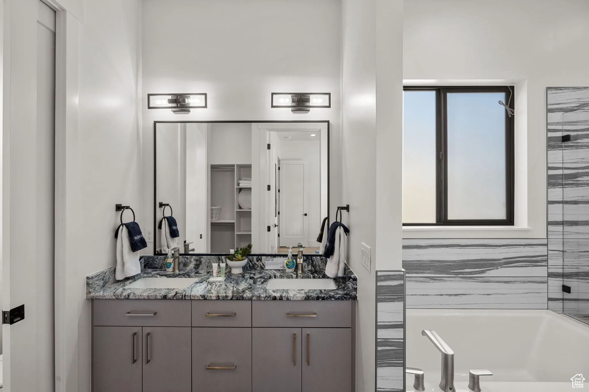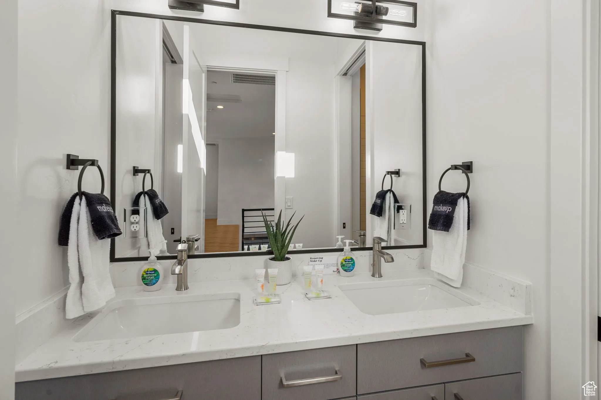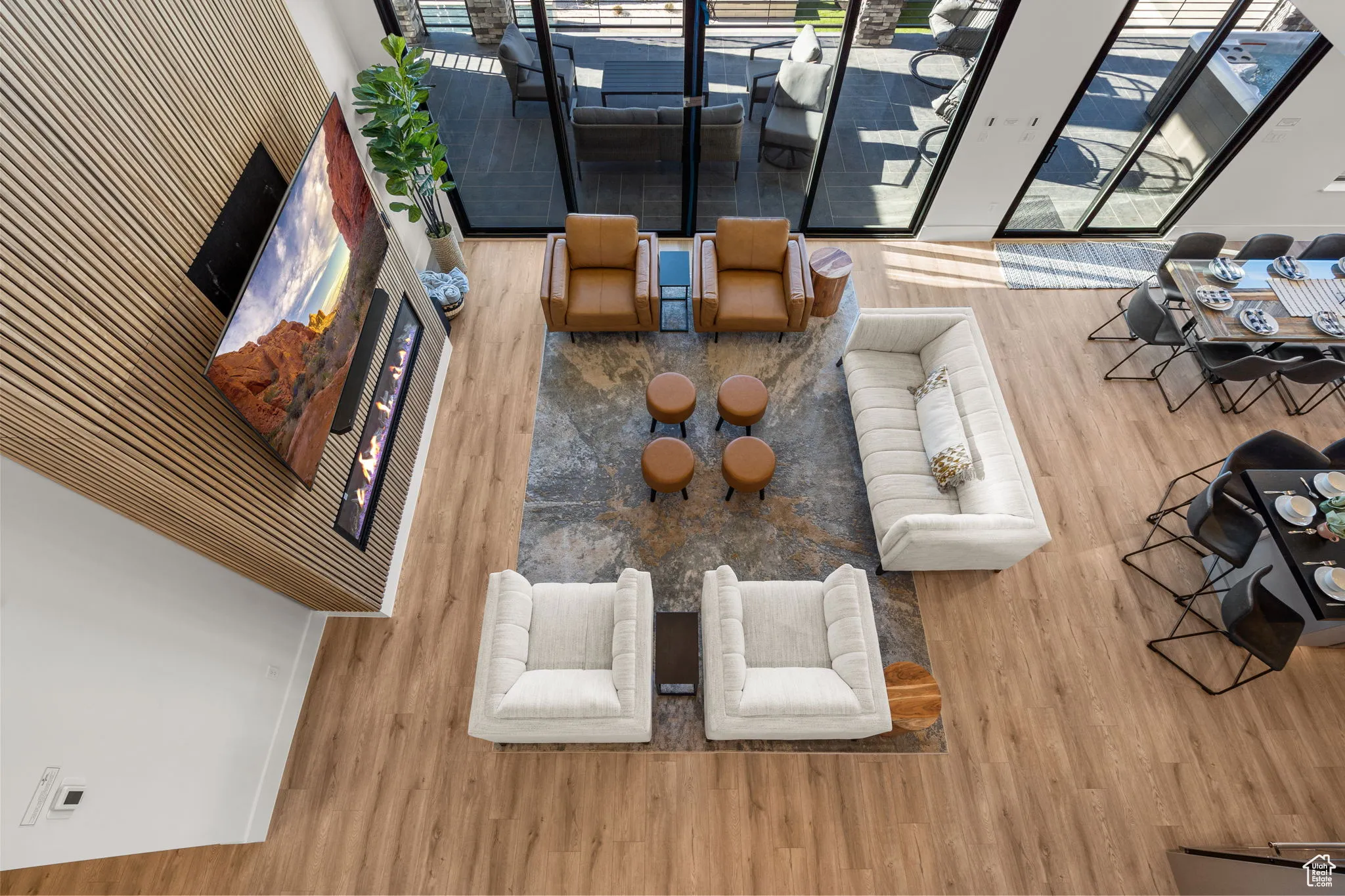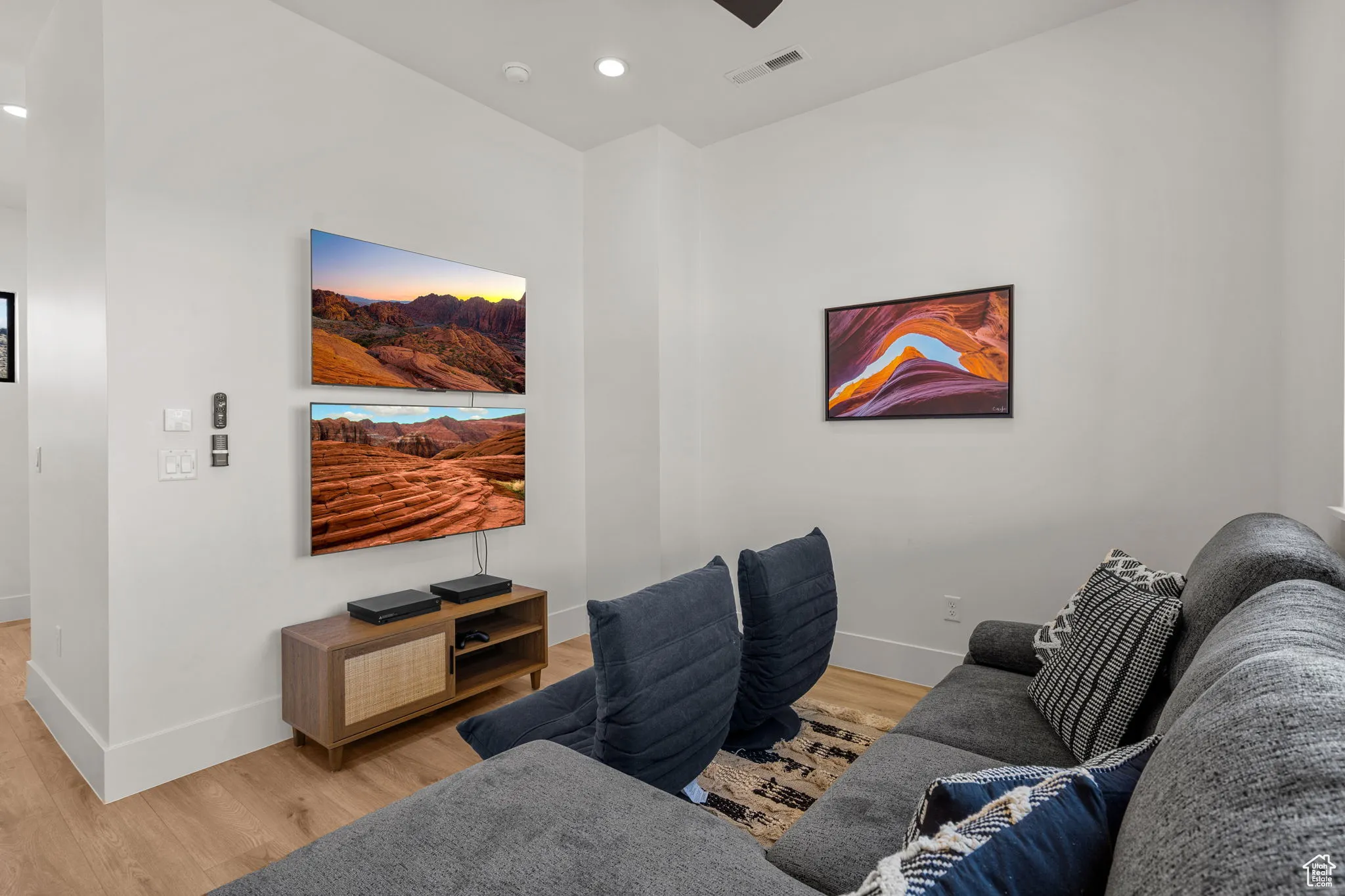 Fractional ownership available. This newly built custom home seamlessly blends modern and rustic styling as you open the large custom pivot door into the entry with lofty ceilings, modern fixtures and rustic wood accent wall on the towering fireplace in the great room. The large kitchen with hidden pantry, built in ice maker, full size side-by-side fridge and freezer and two dishwashers makes it great for entertaining. A set of double sliding doors on the main level open the great room up to a large deck with hot tub where you can take in the sunset or overlook the backyard featuring a pool and hot tub, outdoor fire pit with built in seating, putting green, pool bathroom, and outdoor kitchen area. Full daylight walkout basement with 10′ ceilings also features double sliding doors out to the covered patio, making the transition from indoor to outdoor living effortless. Back inside you’ll find 5 primary style bedrooms each containing en suite bathrooms. Two additional bedrooms on the upper level have built in bunk beds. The garages offer storage space for all your toys- with an RV garage on a suspended slab and extra garage underneath. RV garage also features a condensed pickleball court and basketball standard. House is just a 5 minute drive to Sand Hollow Reservoir. 3 minute walk from all-abilities park with dog park and pickleball courts. Whether you are looking for a vacation home or to feel like you’re on vacation at home, this custom home was designed for you. Furnishings and household goods are negotiable and may be added with a separate bill of sale for $120,000 making this home turn-key. Listing agent is related to seller.