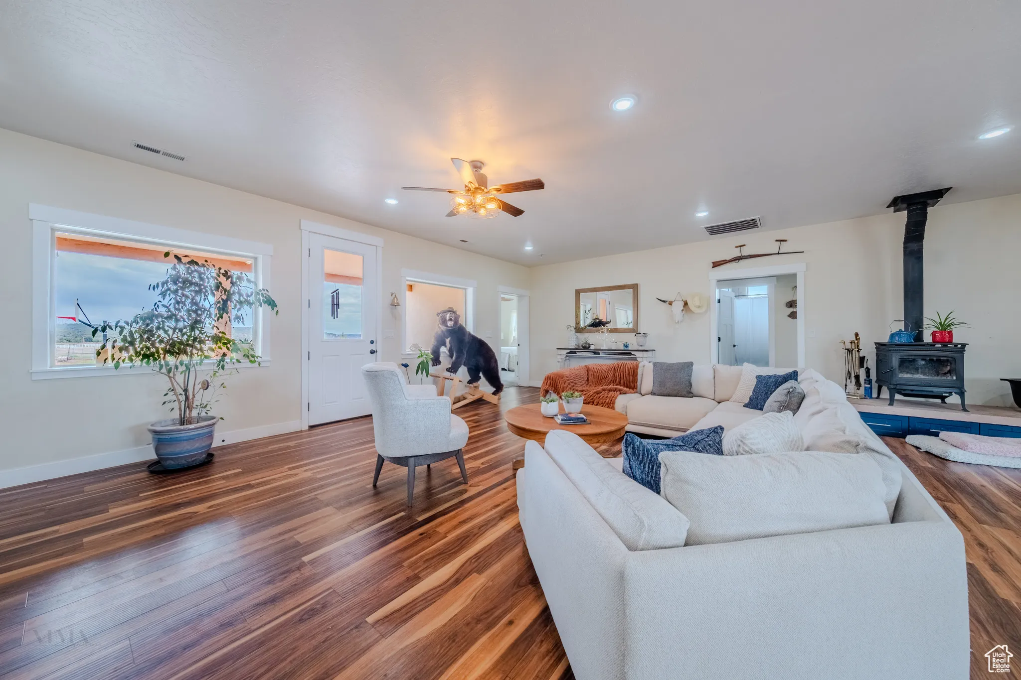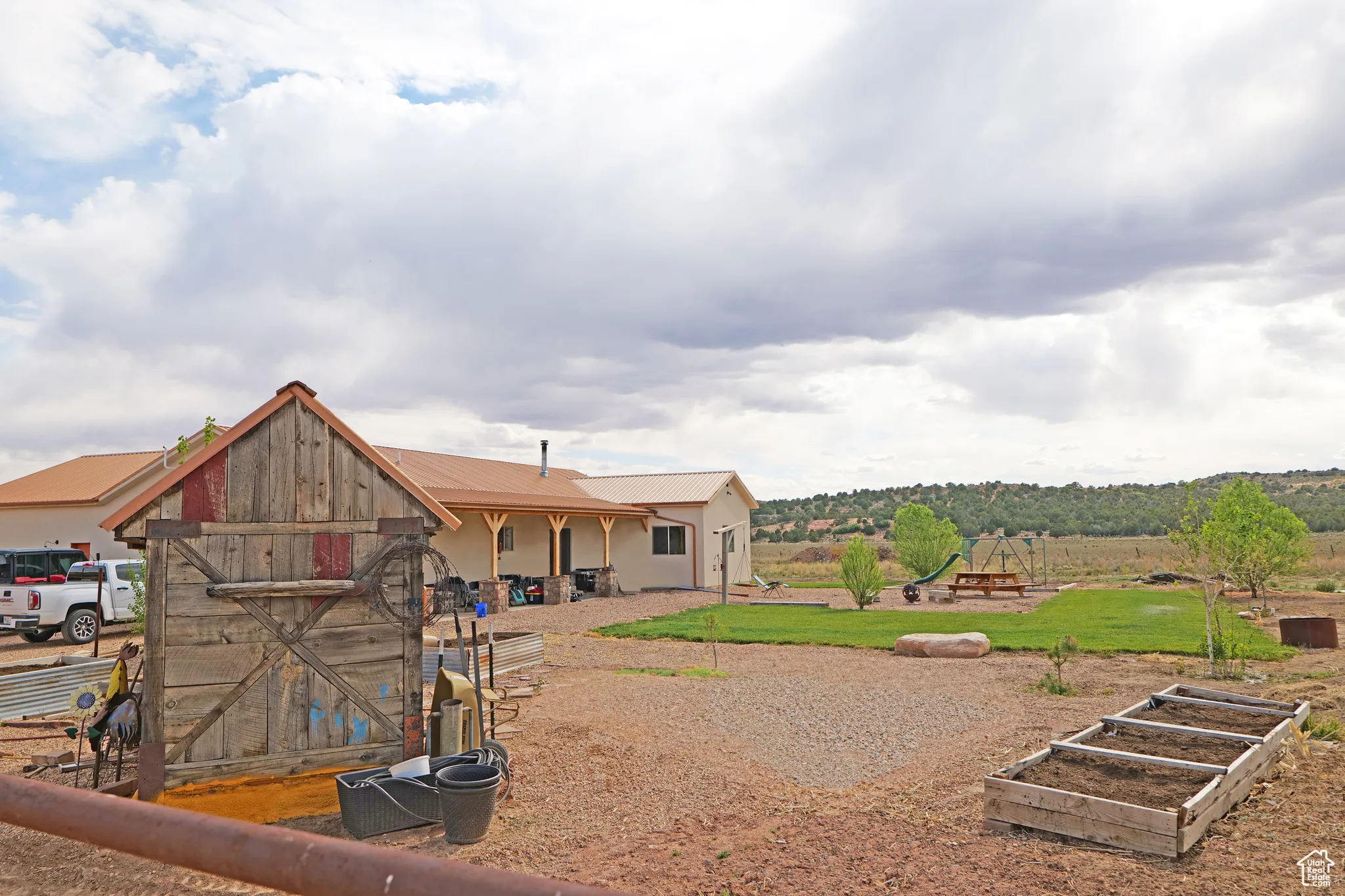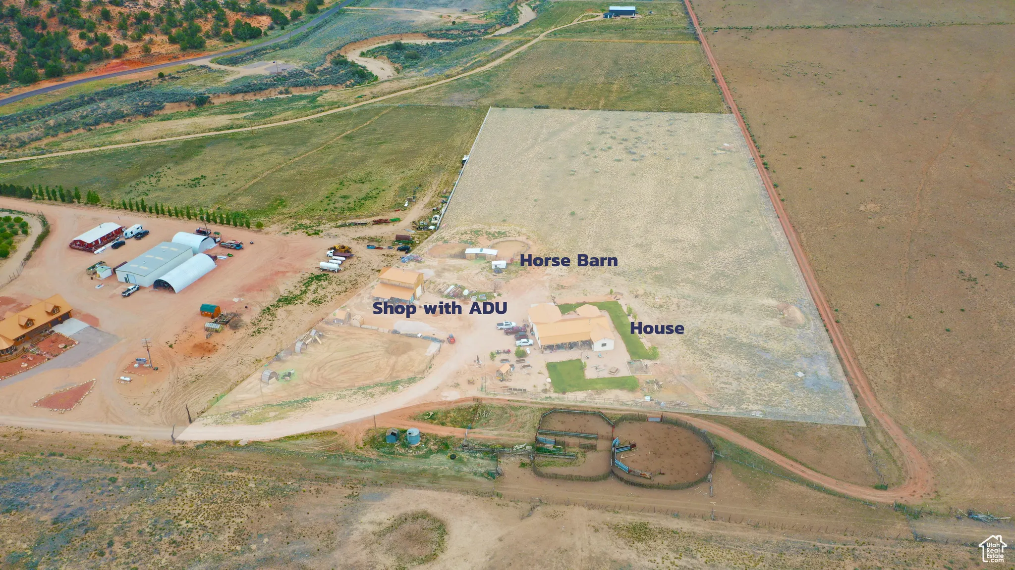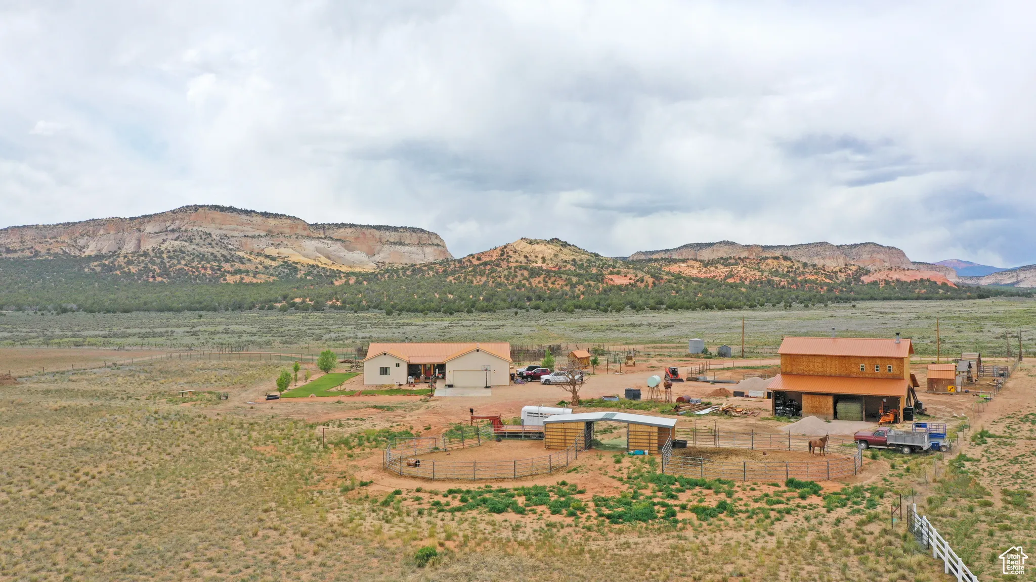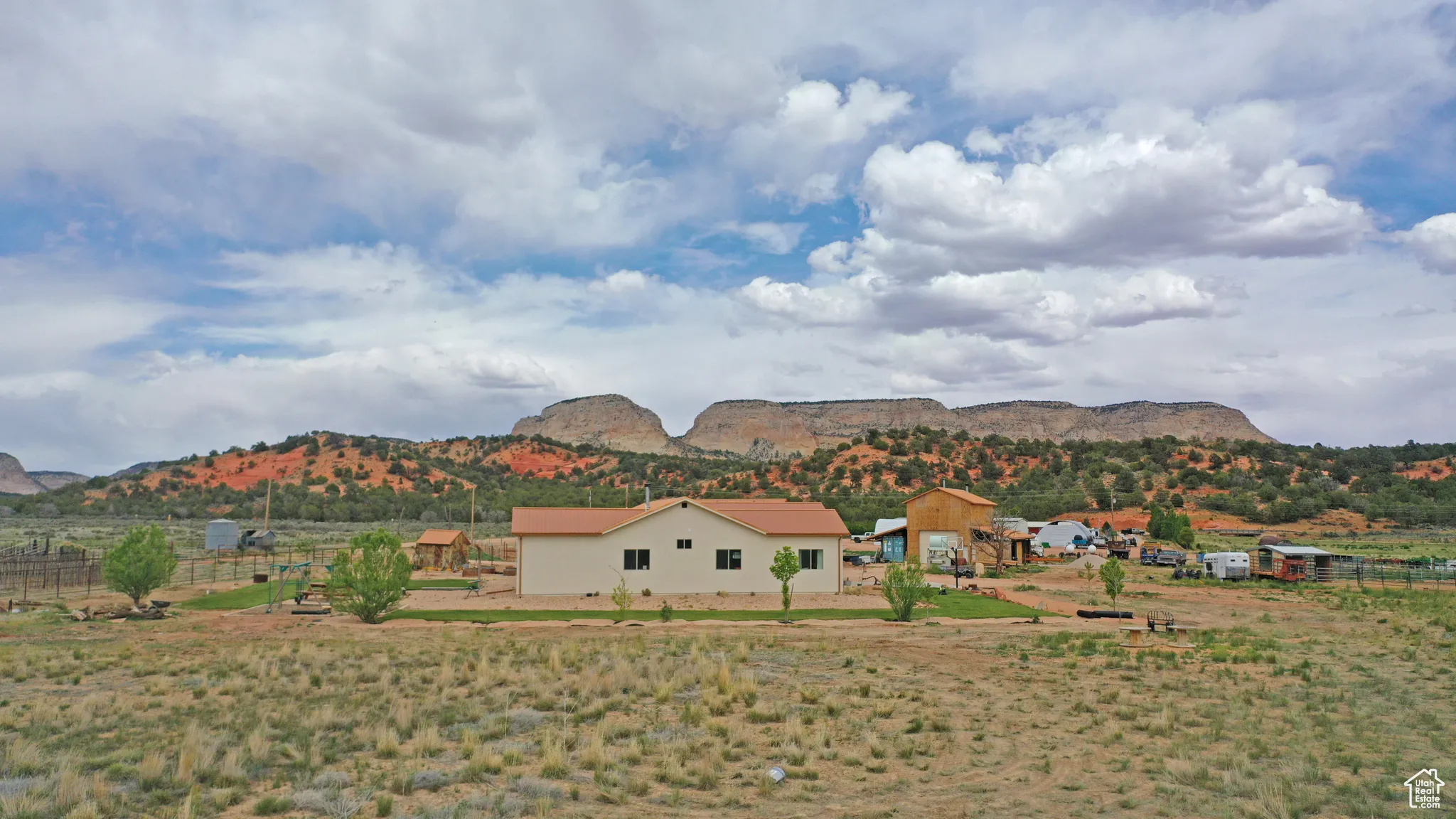 Nestled at the mouth of breathtaking Johnson Canyon, this 4-bedroom, 3-bathroom ranch-style retreat offers the perfect fusion of serenity, functionality, and unparalleled access to Southern Utah’s natural beauty. Sitting on 10 fully usable acres that back directly onto protected BLM land, you’ll enjoy uninterrupted views of towering red cliffs and endless open skies-your private slice of the American West. Designed for those who crave space and versatility, the property includes a charming main residence with warm natural light, an open floor plan, and sweeping canyon views; a well-equipped horse barn; a massive detached workshop perfect for storage, hobbies, or business operations; and an income-generating ADU (accessory dwelling unit) ideal for guests, rental income, or multi-generational living. Whether you’re starting your dream homestead, launching a short-term rental business, or simply escaping the hustle, this property checks every box. Located just minutes from downtown Kanab, you’re in the epicenter of outdoor adventure, with Zion National Park 30 minutes away, Bryce Canyon under an hour, Lake Powell just over an hour, and the Grand Canyon North Rim a mere 90 minutes. Surrounded by world-class hiking, slot canyons, and wildlife refuges, Johnson Canyon offers the peace of remote living with the convenience of being within reach of Kanab’s restaurants, shops, and services. Few properties offer this level of freedom, potential, and natural beauty in one package.