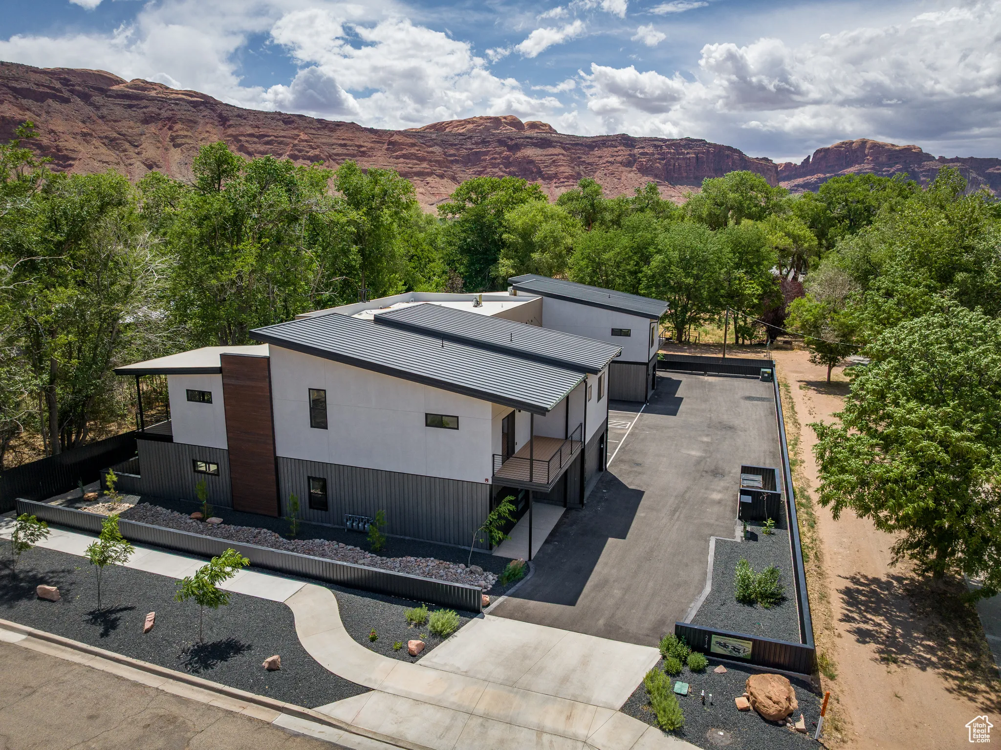 COTTONWOOD CONDOS – Welcome to an extraordinary living experience at Cottonwood Condominiums! Tucked in a quiet, tree-lined enclave centrally located in the heart of Moab, Utah, the Cottonwood Condos offers a rare opportunity to enjoy quiet in-town living with convenient access to renowned outdoor adventure destinations. Relax from your private patio under the cottonwood trees or take to the trails right from your doorstep! This beautifully appointed studio, 1-bath condo with a dedicated parking space with electric vehicle charging, as well as an independent 5’x6′ storage unit, is perfect for those seeking a full-time residence, or weekend retreat. Thoughtfully designed with high-end finishes and a stylish, space-efficient layout. The sleek kitchenette is equipped with premium appliances, quartz countertops, and modern cabinetry-ideal for casual cooking and entertaining. This incredible opportunity to live exceptionally in Moab next to the Mill Creek parkway provides close access to the local ball fields, library, boutiques and restaurants, with Arches and Canyonlands National Parks only a short, scenic drive away, the perfect basecamp for those who seek luxury living and expansive access to adventure!