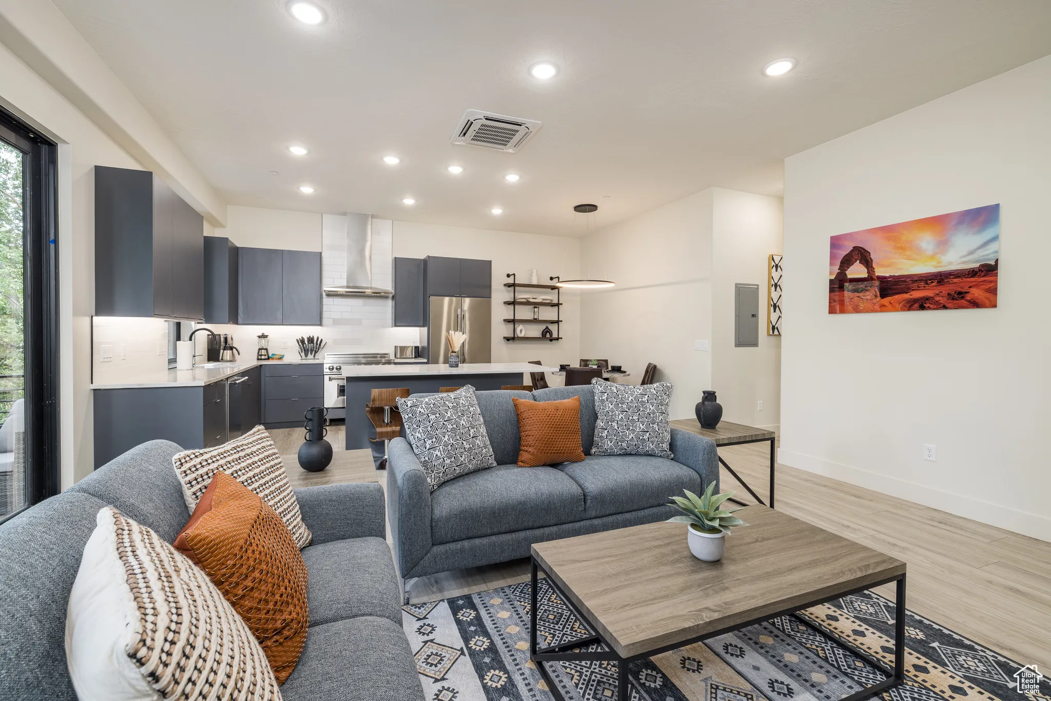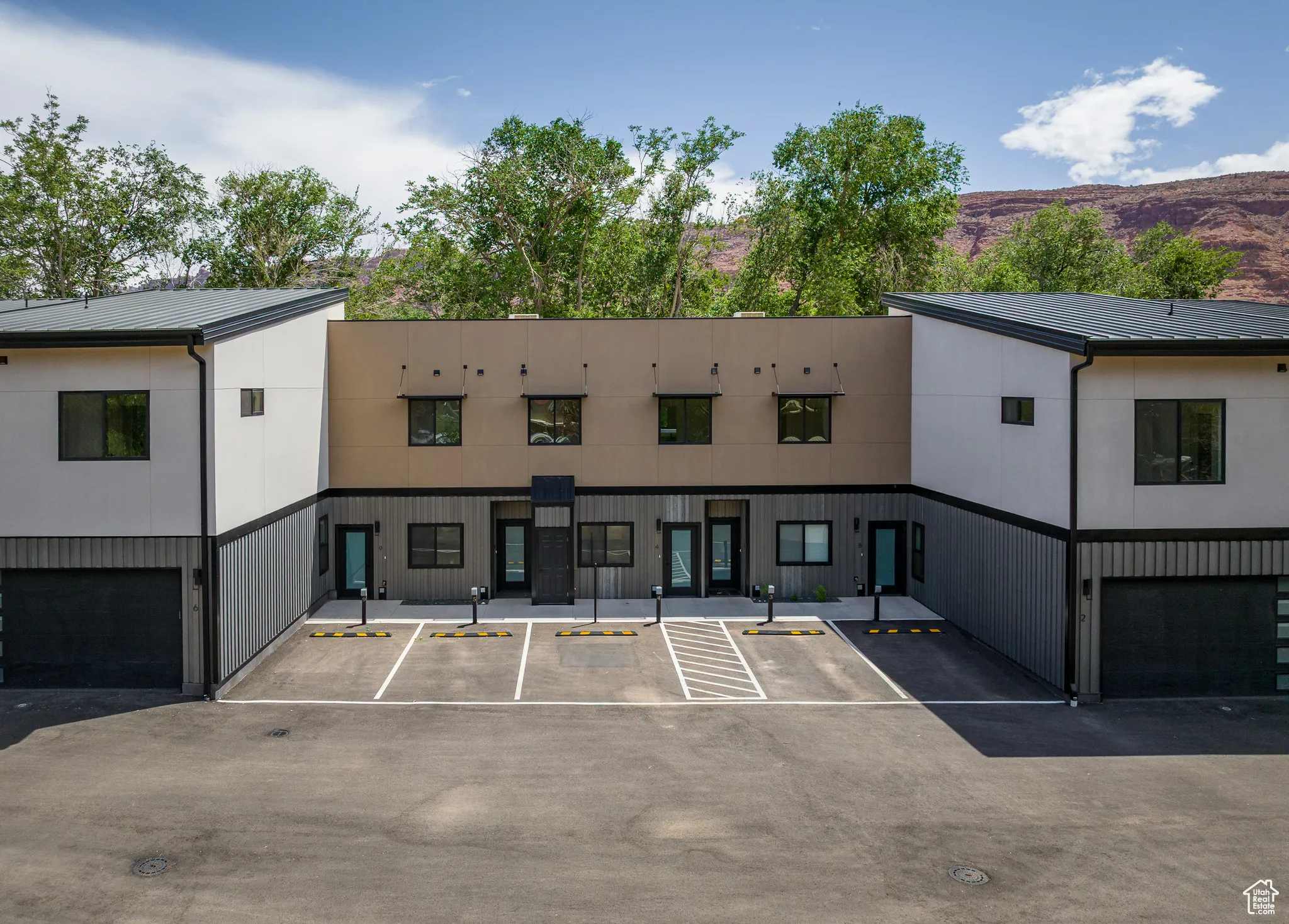 COTTONWOOD CONDOS – Welcome to an extraordinary living experience at Cottonwood Condominiums! Tucked in a quiet, tree-lined enclave centrally located in the heart of Moab, Utah, the Cottonwood Condos offers a rare opportunity to enjoy quiet in-town living with convenient access to renowned outdoor adventure destinations. Relax from your private patio under the cottonwood trees or take to the trails right from your doorstep! This beautifully designed 2-bedroom, 2-bath upper level condo, with dedicated parking space with electric vehicle charging, as well as an independent 5’x6′ storage unit, offers luxury living featuring high-end finishes throughout. The open-concept layout includes a chef’s kitchen outfitted with premium stainless steel appliances, quartz countertops, and custom cabinetry. This incredible opportunity to live exceptionally in Moab next to the Mill Creek Parkway provides close access to the local ball fields, library, boutiques and restaurants, with Arches and Canyonlands National Parks only a short, scenic drive away, the perfect basecamp for those who seek luxury living and expansive access to adventure!