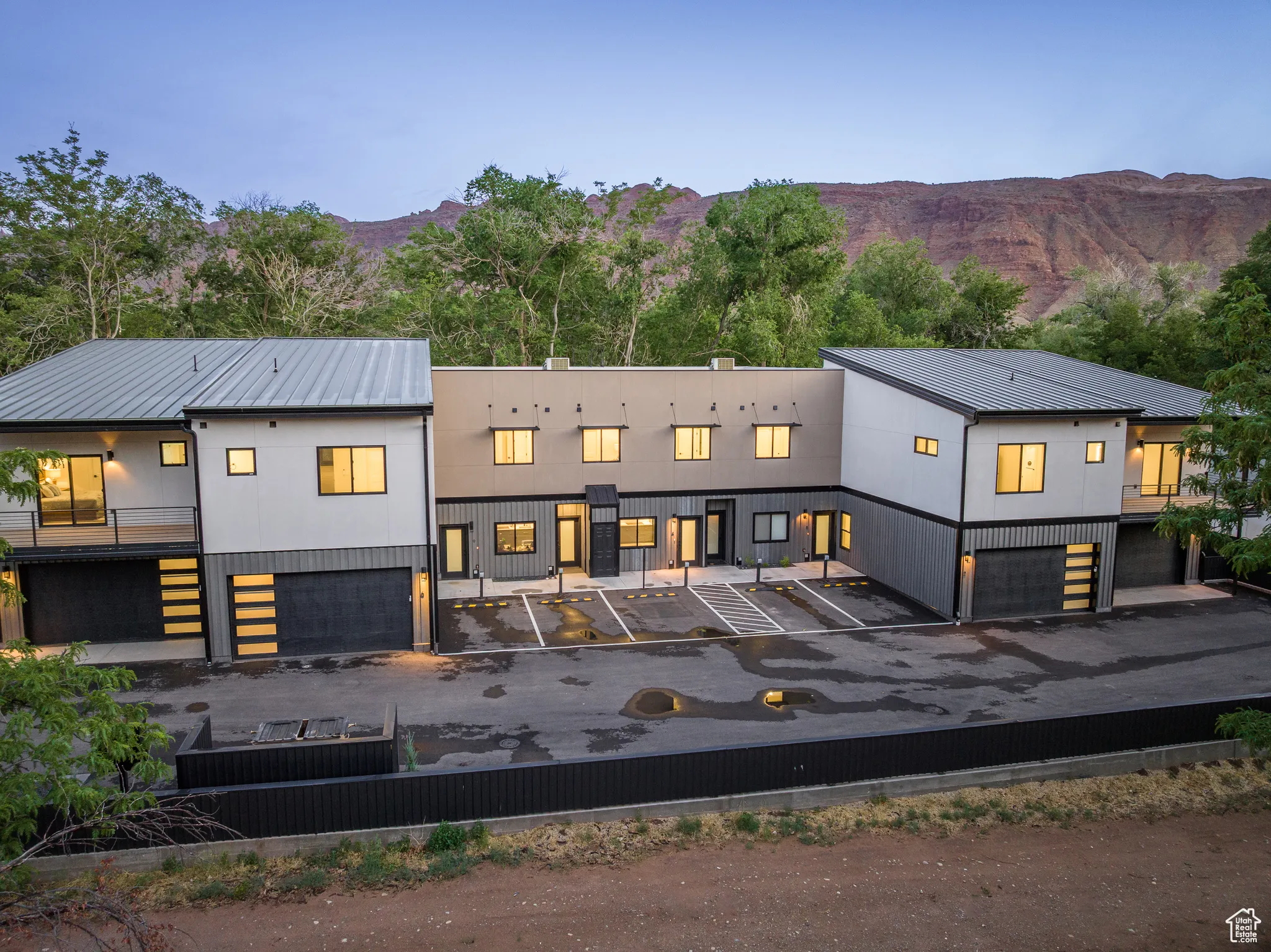 COTTONWOOD CONDOS – Welcome to an extraordinary living experience at Cottonwood Condominiums! Tucked in a quiet, tree-lined enclave centrally located in the heart of Moab, Utah, the Cottonwood Condos offers a rare opportunity to enjoy quiet in-town living with convenient access to renowned outdoor adventure destinations. Relax from your private patio under the cottonwood trees or take to the trails right from your doorstep! This stunning 3-bedroom, 2.5-bath condo was designed with upscale comfort and style in mind, featuring high-end finishes throughout-including wide-plank LVP flooring, sleek modern fixtures, and top-of-the-line stainless steel appliances in the gourmet kitchen. The thoughtful reverse floor plan is the ideal layout for privacy and functionality: the spacious primary suite is located upstairs, complete with a spa-inspired en-suite bath, and walk-in closet. Downstairs, two generously sized bedrooms share a full bath-perfect for guests, home office space, or loved ones. Phenomenal outdoor spaces with the living room balcony patio and ground floor patio! This incredible opportunity to live exceptionally in Moab next to the Mill Creek Parkway provides close access to the local ball fields, library, boutiques and restaurants, with Arches and Canyonlands National Parks only a short, scenic drive away. The perfect basecamp, with a two car garage with electric vehicle charging, for those who seek luxury living and expansive access to adventure!