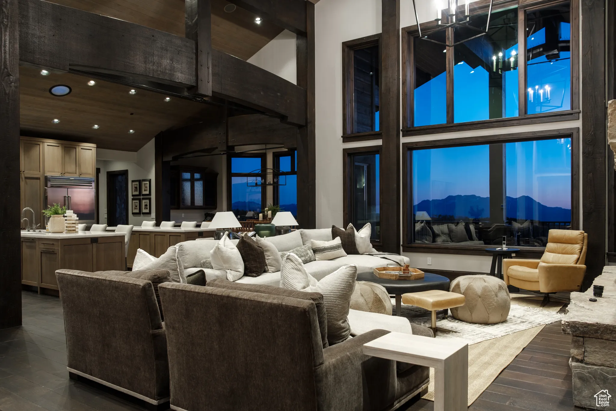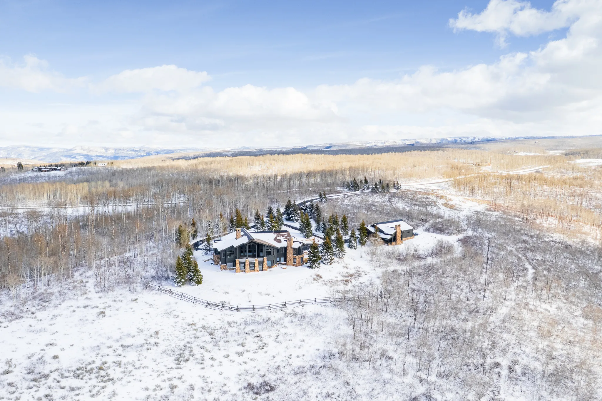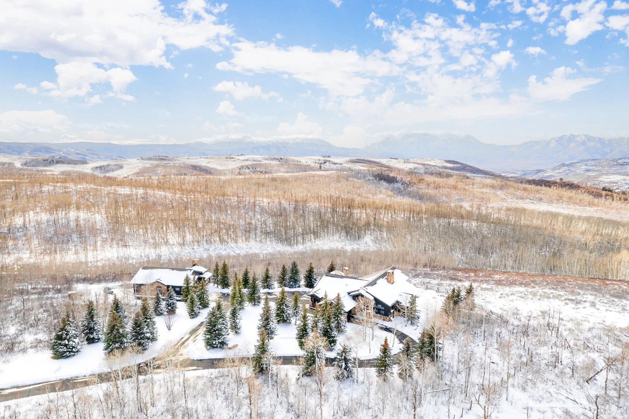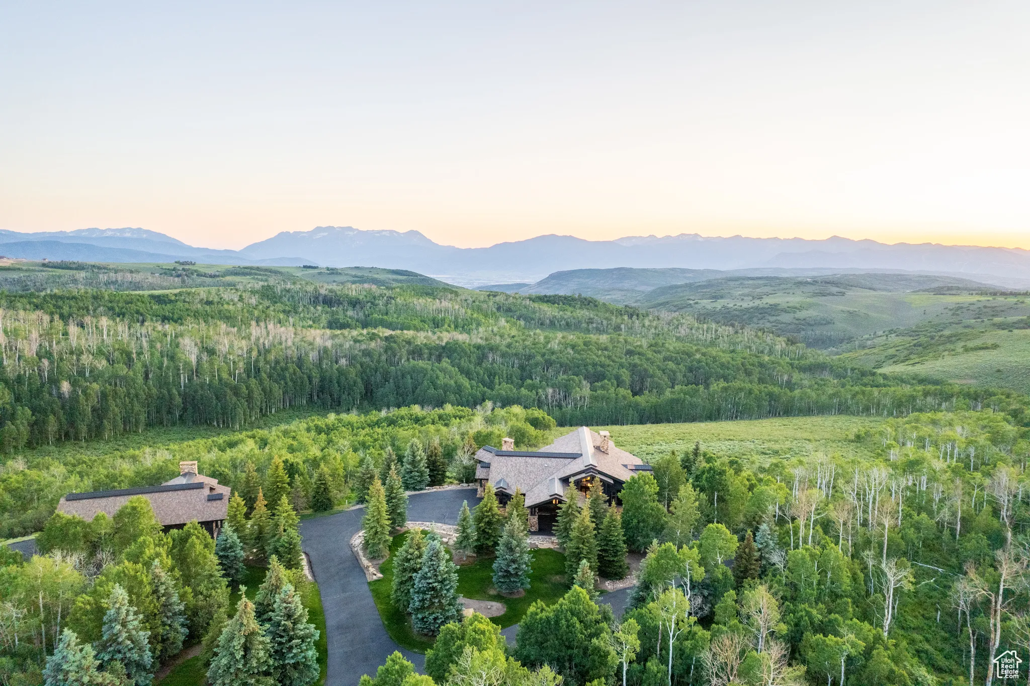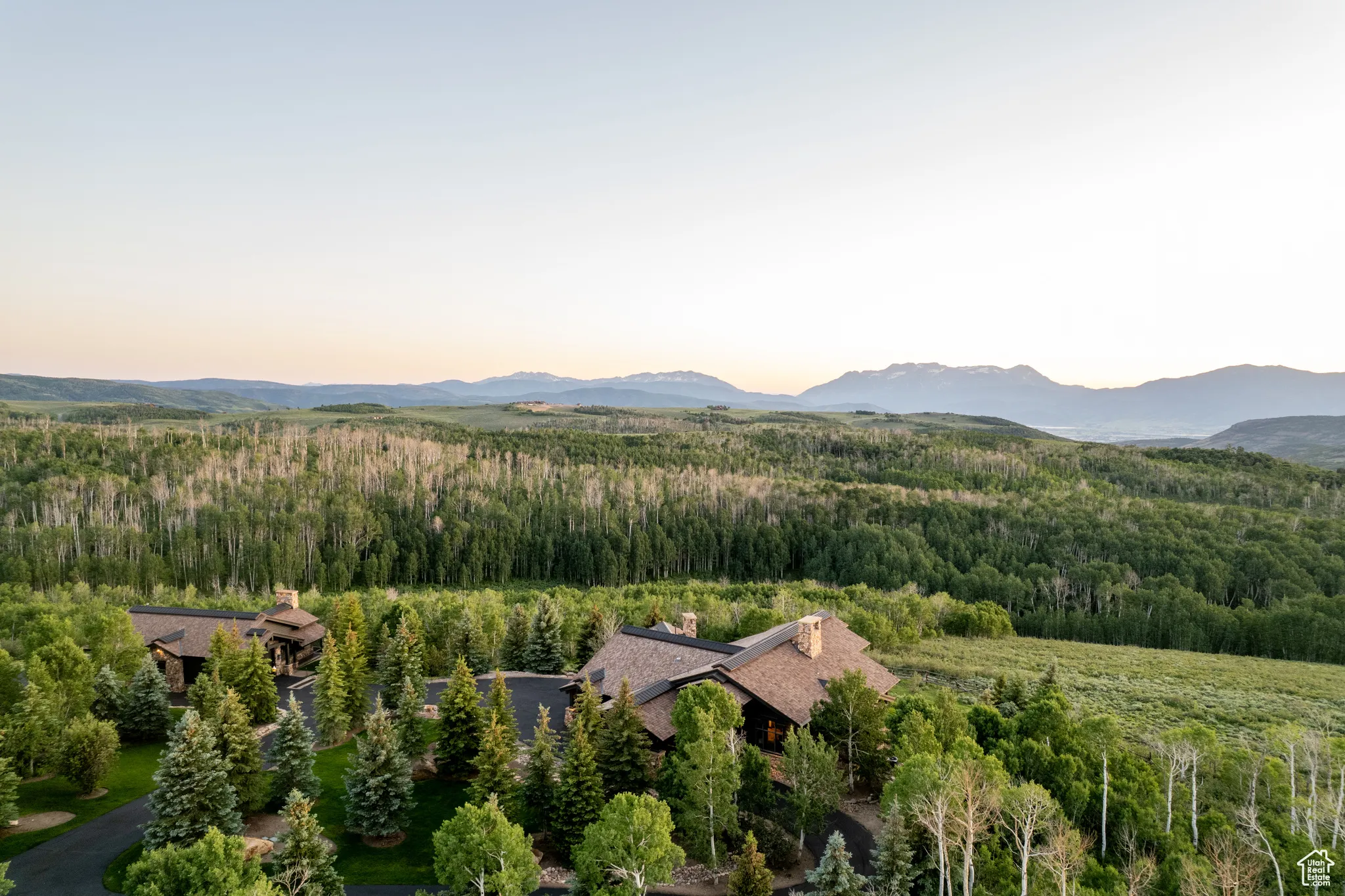 Welcome to Highpine Ranch, a newly transformed mountain estate set on 160 acres of quaking aspen and pine-covered wilderness in the prestigious gated enclave of Wolf Creek Ranch. Spanning 8,800 square feet, the residence was fully remodeled in 2025 with a vision rooted in simplicity, scale, and refined materials. The heart of the home is a striking gourmet kitchen featuring luminous Cristallo quartzite countertops, known for their rare translucent clarity and organic veining. Custom White Oak cabinetry by Mar Wood pairs with a full suite of Wolf and SubZero appliances, elevating both utility and design. Five en-suite bedrooms, including a main-level primary suite, offer privacy and comfort, while wide-plank floors, sleek new fireplaces, and curated lighting throughout bring quiet sophistication to every room. Technology and nature harmonize through a full AVS audio/video integration and Ketra dynamic lighting, which adjusts throughout the day to mirror natural daylight. Outdoors, expansive decks frame commanding views of Mt. Timpanogos, stretching across ridgelines and into protected wilderness. A heated barn enhances the property’s versatility, with storage for up to 10 vehicles, a charming guest apartment, and direct access to private trails. Whether hosting, relaxing, or exploring, Highpine Ranch offers an extraordinary balance of architectural integrity, natural beauty, and quiet luxury, set within one of the Mountain West’s most celebrated private land holdings.