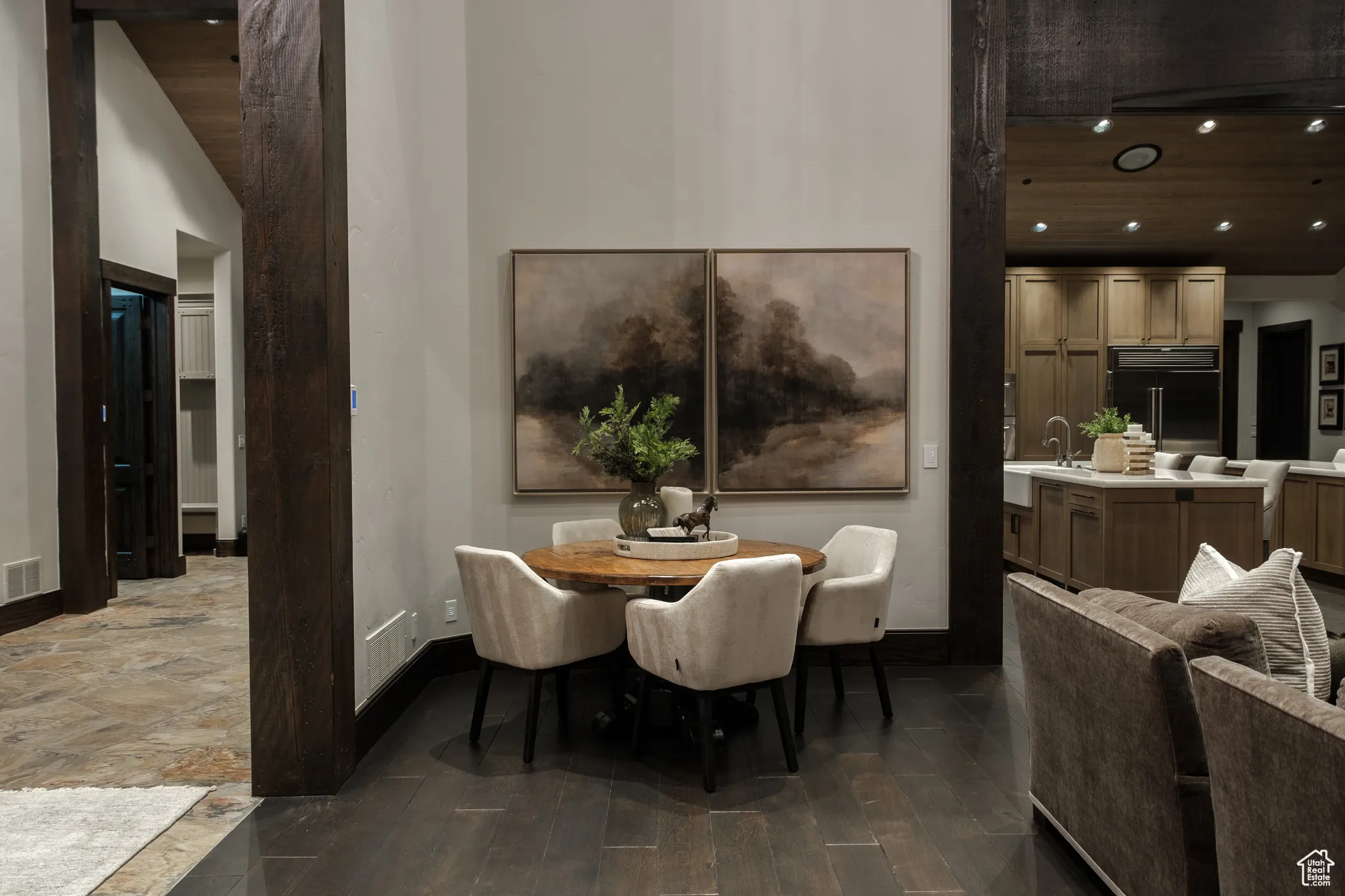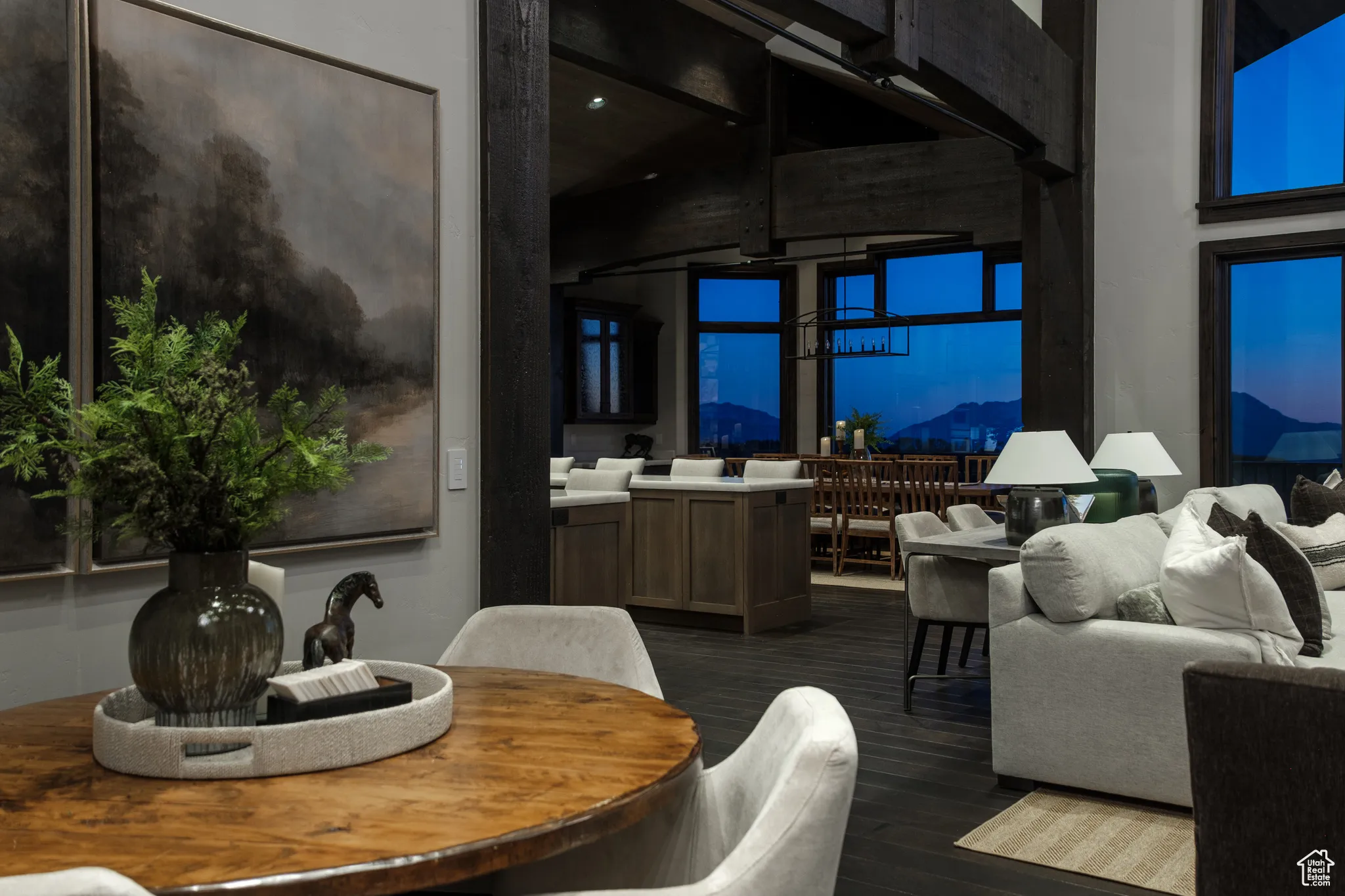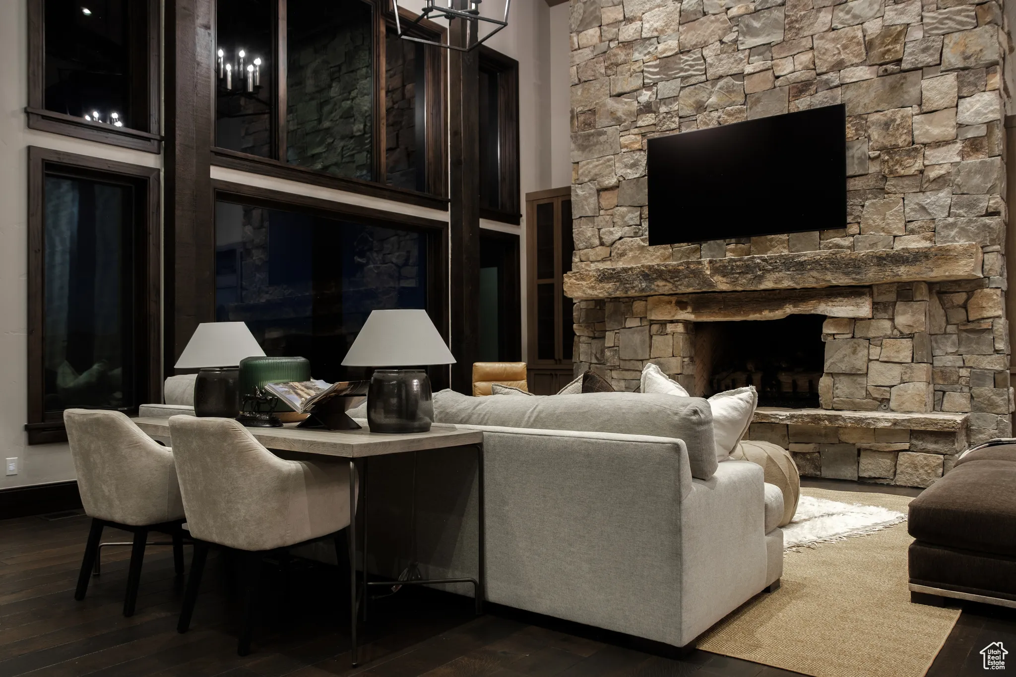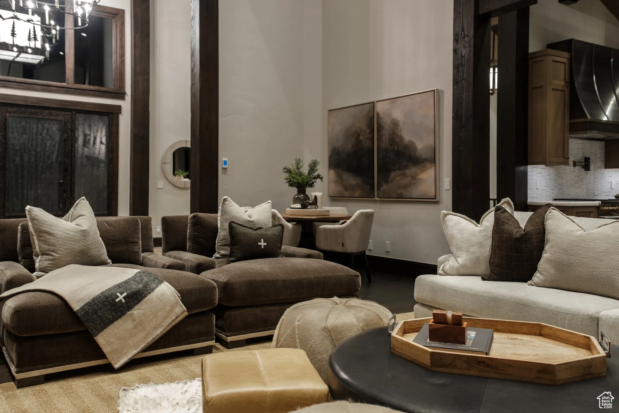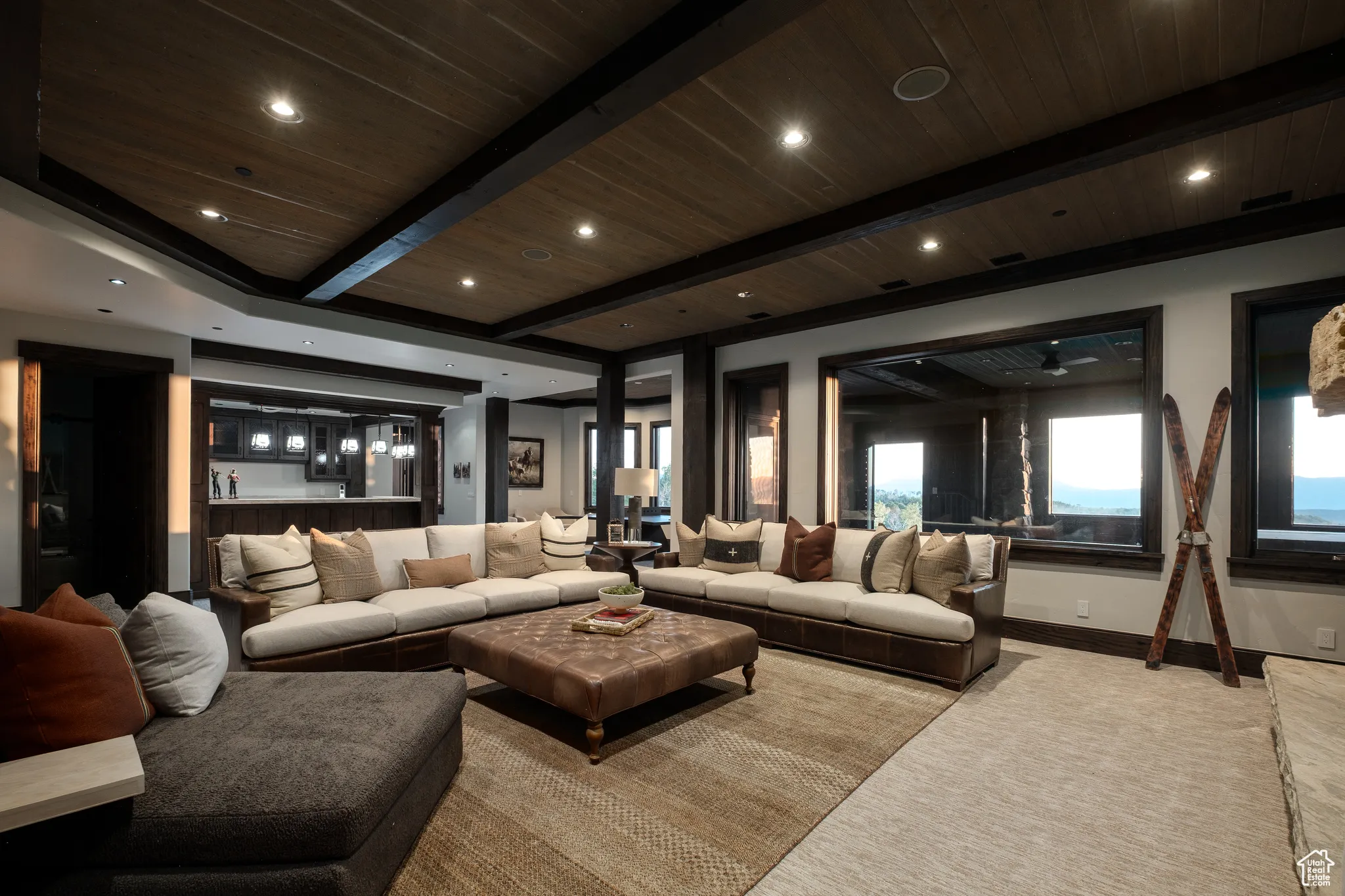Welcome to Highpine Ranch, a newly transformed mountain estate set on 160 acres of quaking aspen and pine-covered wilderness in the prestigious gated enclave of Wolf Creek Ranch. Spanning 8,800 square feet, the residence was fully remodeled in 2025 with a vision rooted in simplicity, scale, and refined materials. The heart of the home is a striking gourmet kitchen featuring luminous Cristallo quartzite countertops, known for their rare translucent clarity and organic veining. Custom White Oak cabinetry by Mar Wood pairs with a full suite of Wolf and SubZero appliances, elevating both utility and design. Five en-suite bedrooms, including a main-level primary suite, offer privacy and comfort, while wide-plank floors, sleek new fireplaces, and curated lighting throughout bring quiet sophistication to every room. Technology and nature harmonize through a full AVS audio/video integration and Ketra dynamic lighting, which adjusts throughout the day to mirror natural daylight. Outdoors, expansive decks frame commanding views of Mt. Timpanogos, stretching across ridgelines and into protected wilderness. A heated barn enhances the property’s versatility, with storage for up to 10 vehicles, a charming guest apartment, and direct access to private trails. Whether hosting, relaxing, or exploring, Highpine Ranch offers an extraordinary balance of architectural integrity, natural beauty, and quiet luxury, set within one of the Mountain West’s most celebrated private land holdings.