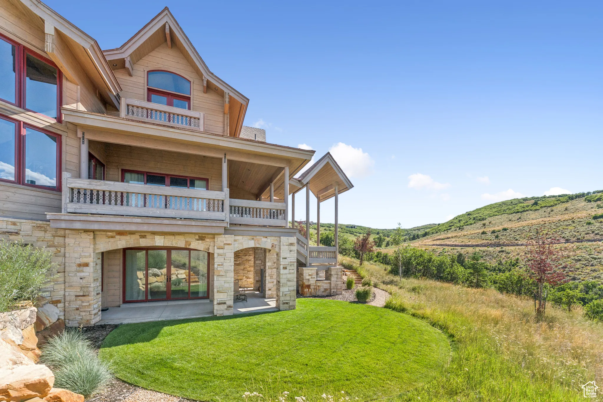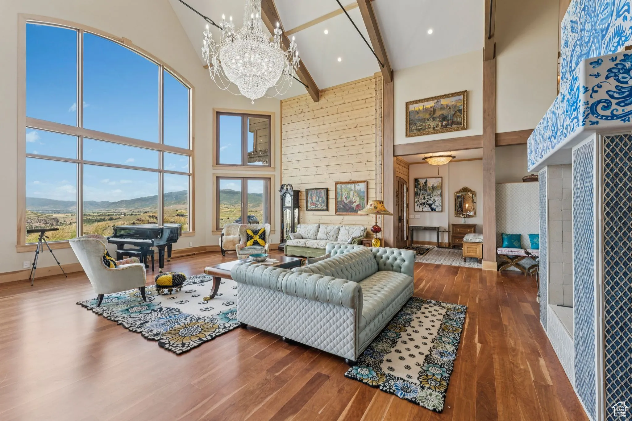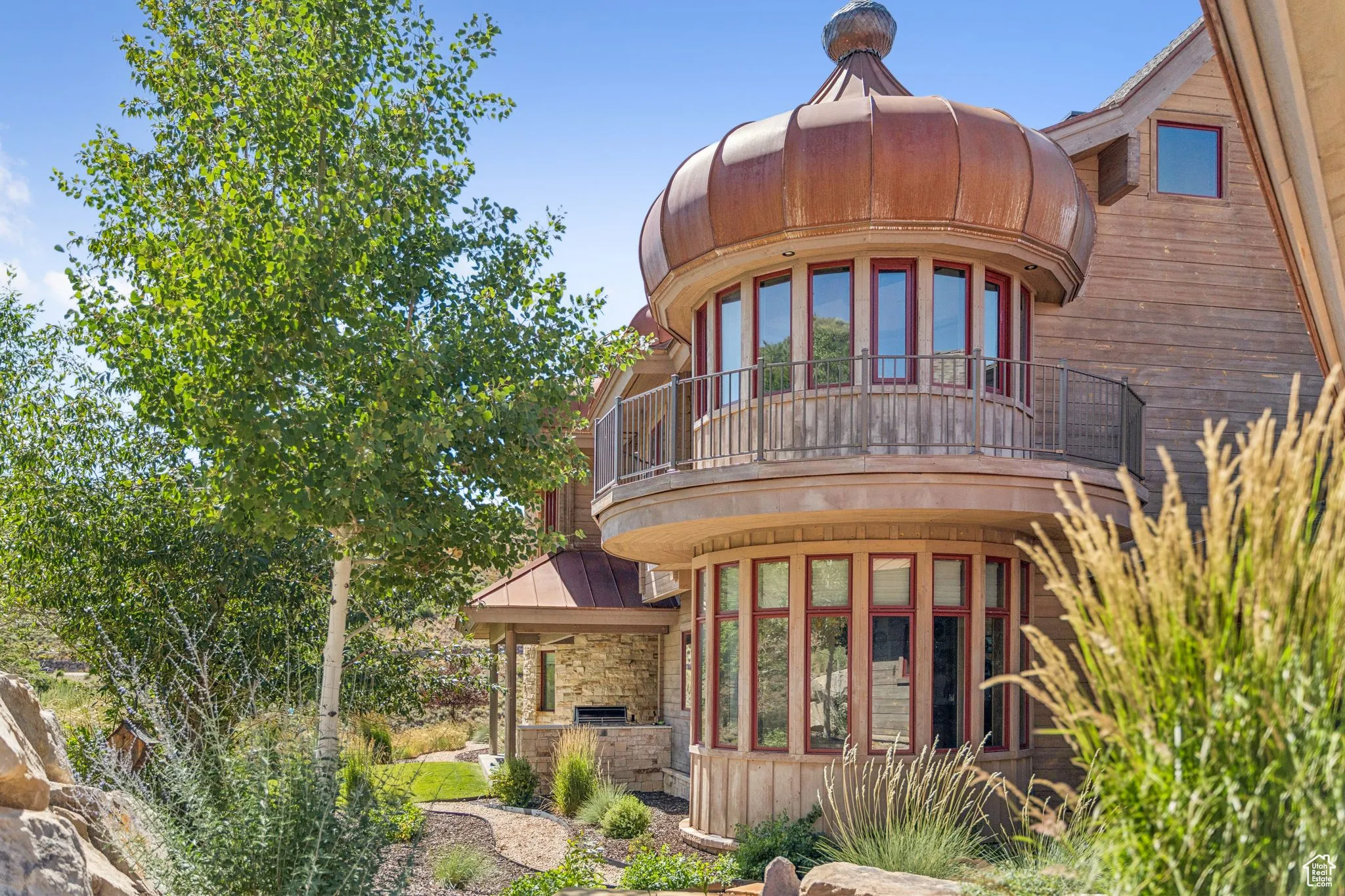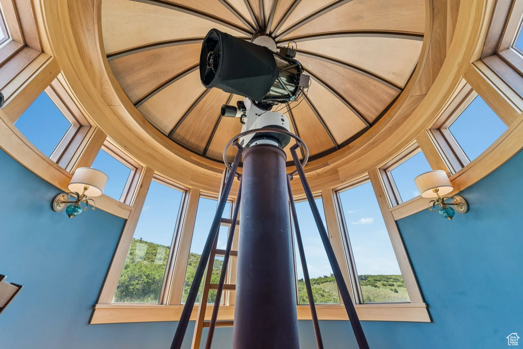An Astronomer’s Dream Home- A European Masterpiece with a Private Observatory. If you’ve ever dreamed of exploring the stars from your own home, this is the place. This extraordinary Victory Ranch residence blends old-world European artistry with the awe of a private observatory, complete with a telescope and retractable dome roof. With handcrafted details including a 1,000 sq ft spa, gourmet kitchen, turret library, and panoramic views, this home is both imaginative and masterfully executed. A true one-of-one. Perched on 4+ acres, this architectural masterpiece overlooks the renowned Rees Jones-designed golf course. Designed with intention, this Honka home features custom pine timber from Finland. The construction is natural, sustainable, and free from synthetic insulation. Throughout the home, custom Venetian lighting highlights the exquisite craftsmanship. The living room boasts soaring vaulted ceilings and expansive windows that frame breathtaking views. At its heart is a one-of-a-kind four-sided fireplace adorned with hand-painted designs. The elegant kitchen is a chef’s dream, with custom walnut, maple, and glass cabinetry, a walnut countertop with iridescent blue inlay. Adding to its uniqueness is a custom Pechka and pizza oven, hand-built on-site. The extraordinary library is housed in a stone turret with curved walnut & maple doors and inlaid custom floors. Above it, a private observatory serves as the home’s crown jewel, equipped with a telescope & a retractable dome roof. The home features 5 luxurious suites, each with unique scenic views. Outdoor living is just as impressive, with a covered patio featuring a built-in grill and multiple balconies. A two-car garage and custom dog wash station complete the home. Victory Ranch is a gated community on over 6,250 pristine acres with 4 miles of private Upper Provo River access, offering a lifestyle of unmatched adventure and serenity.
