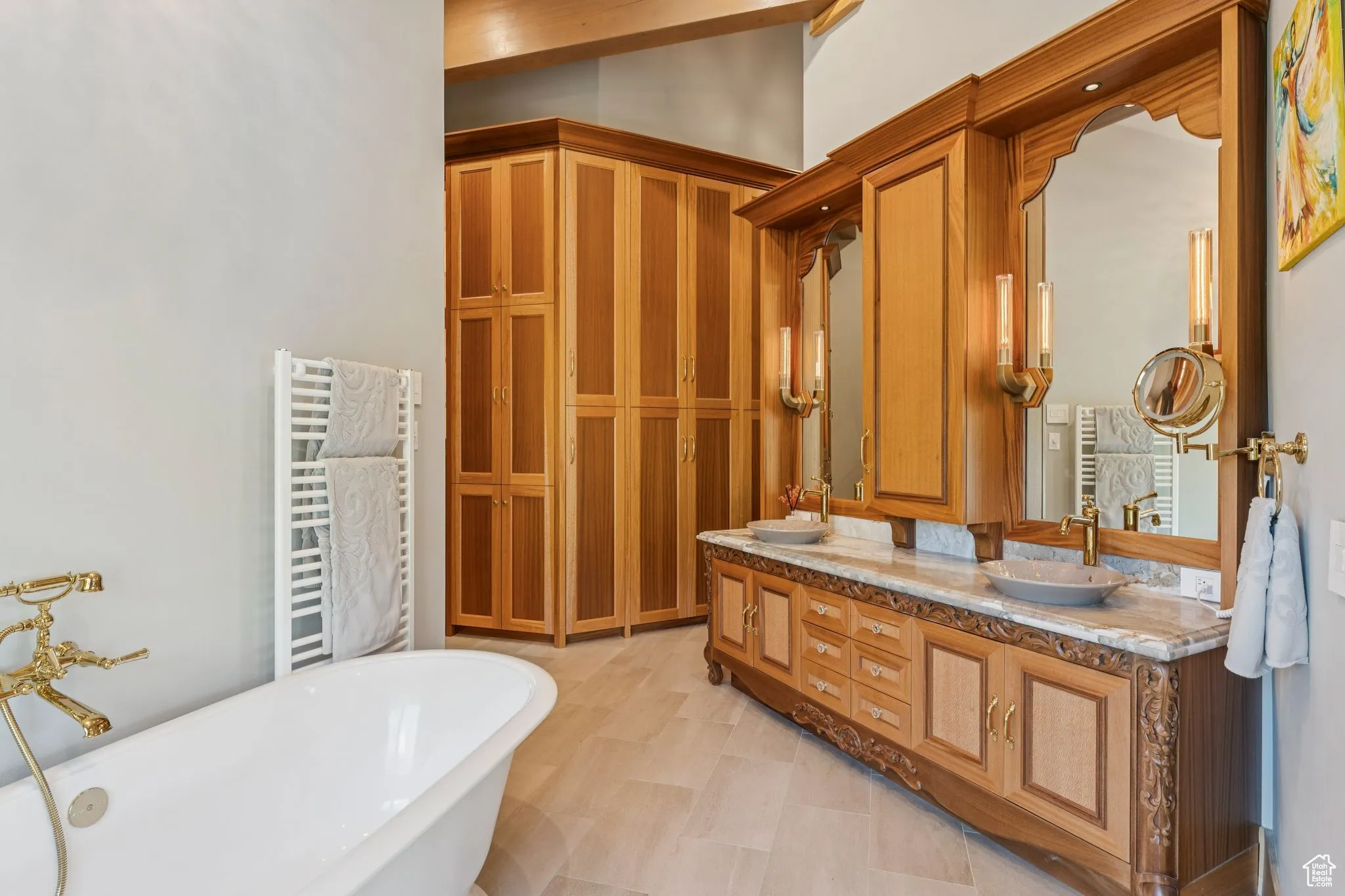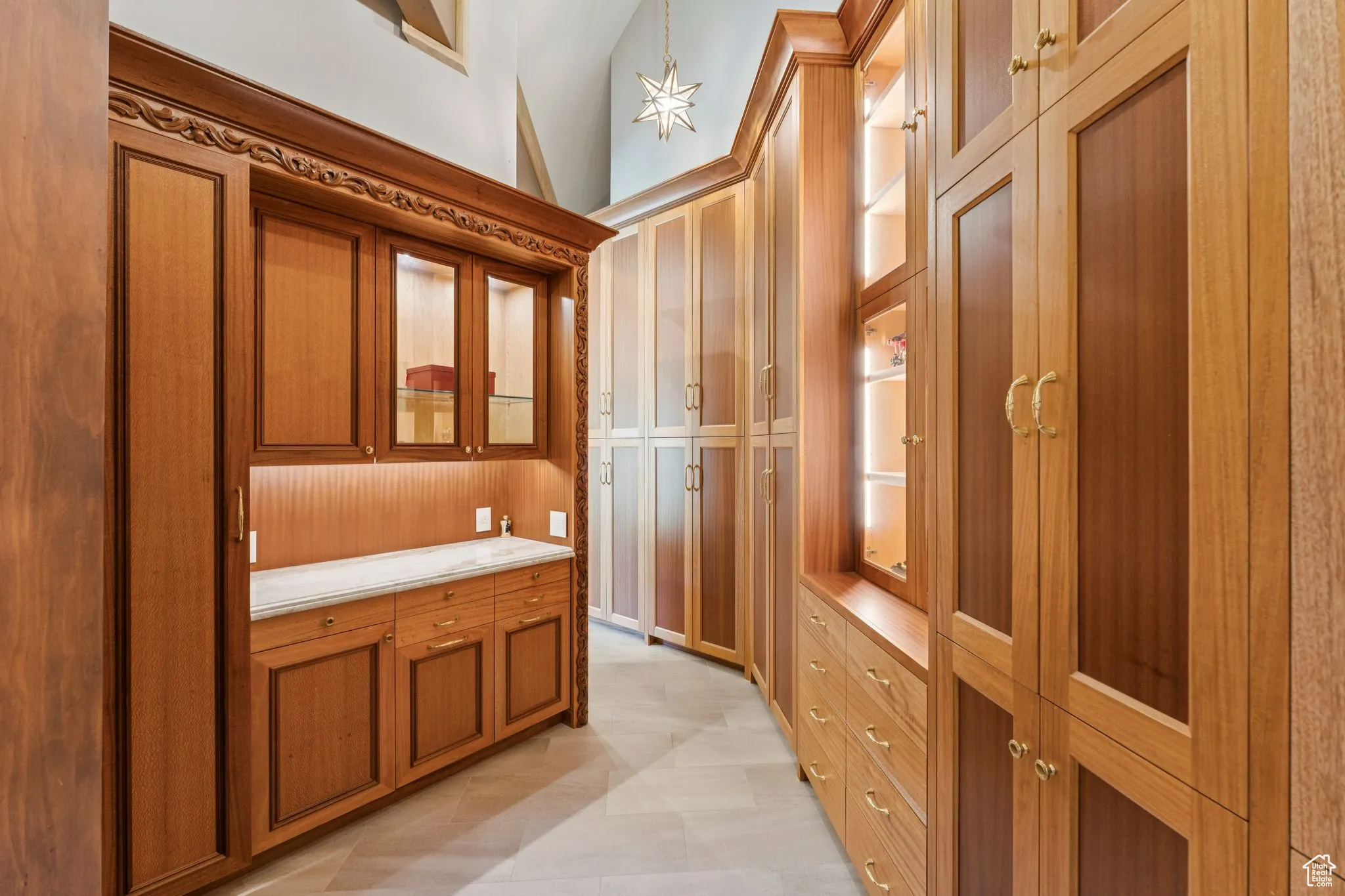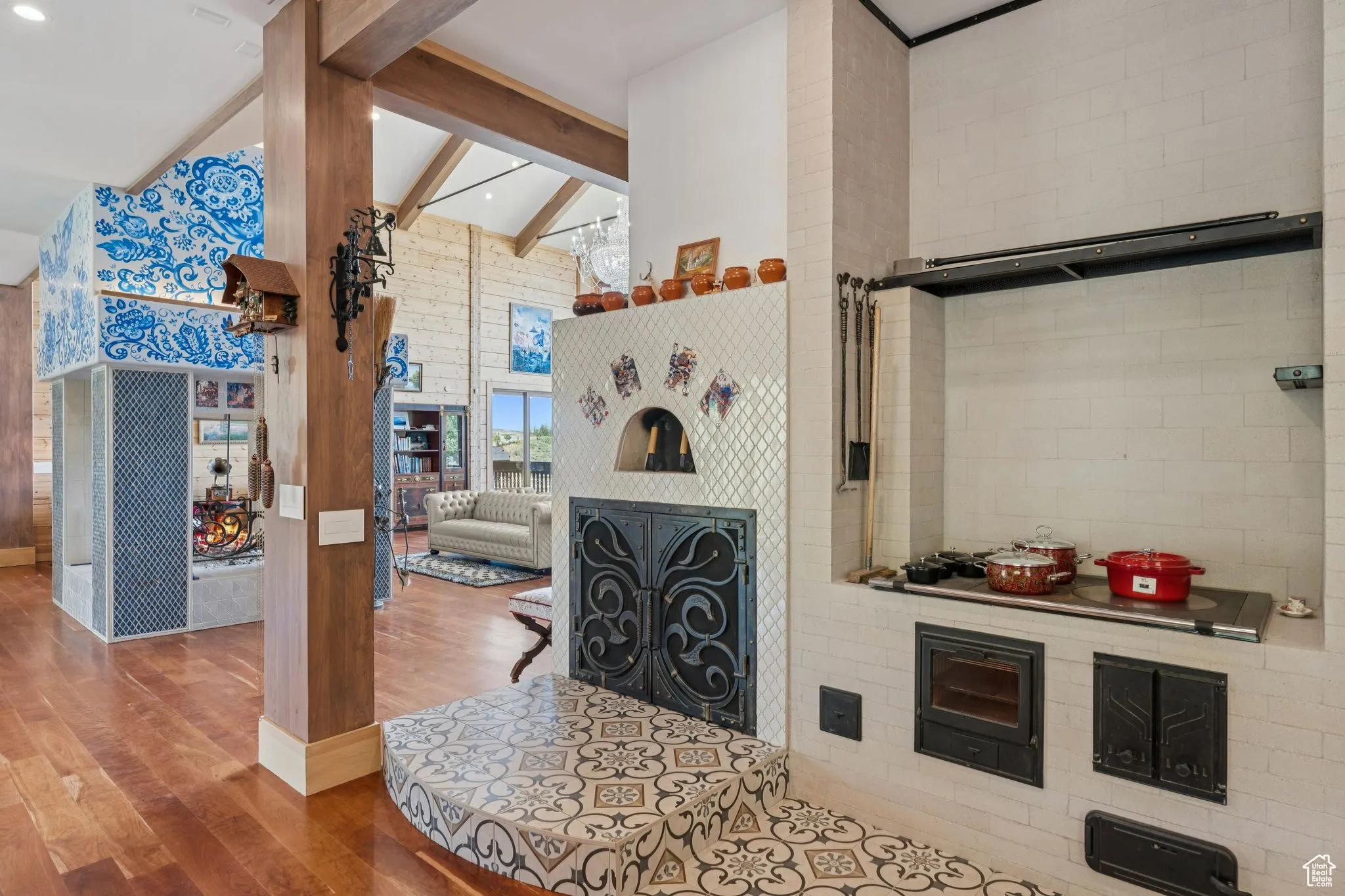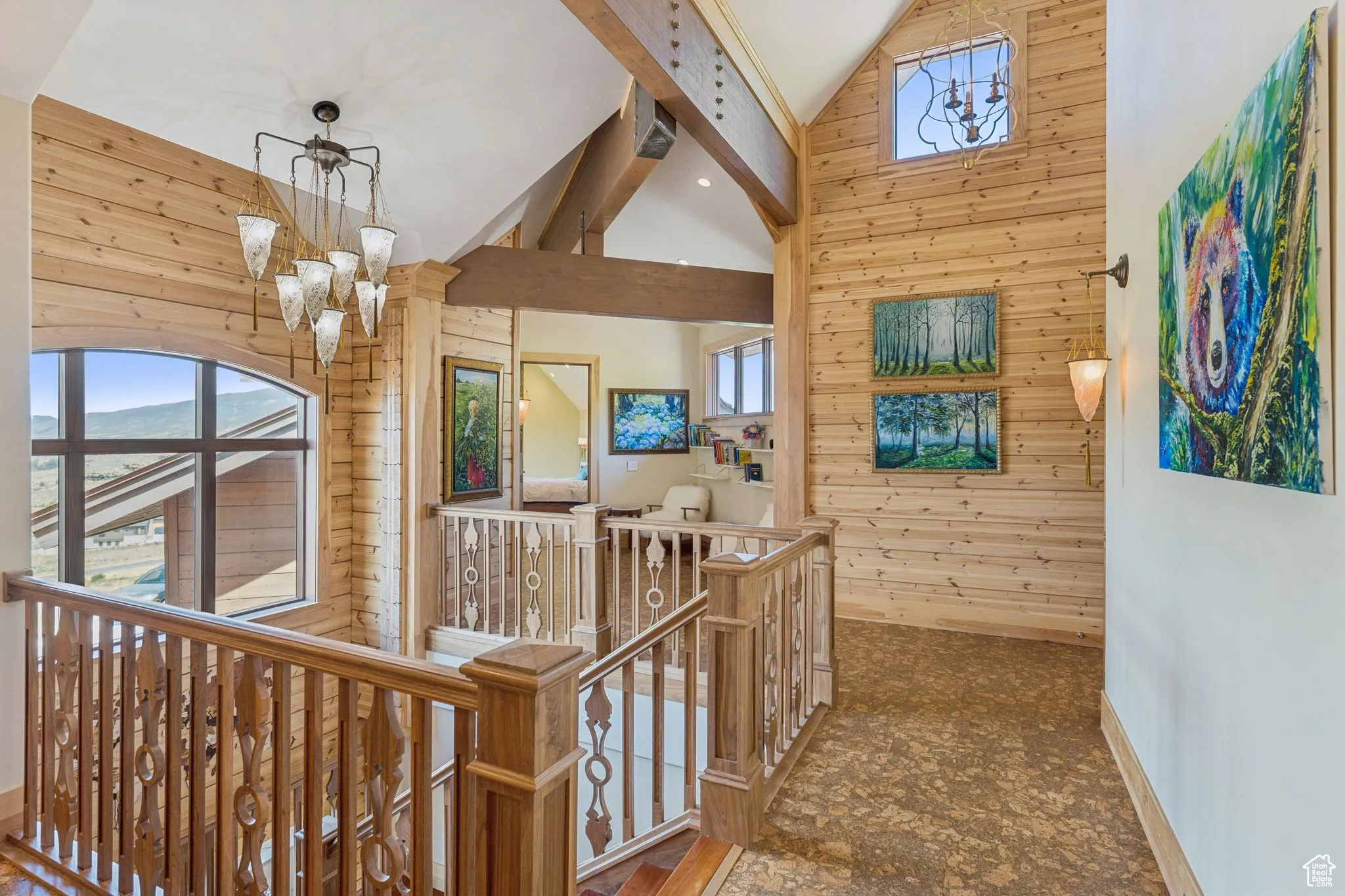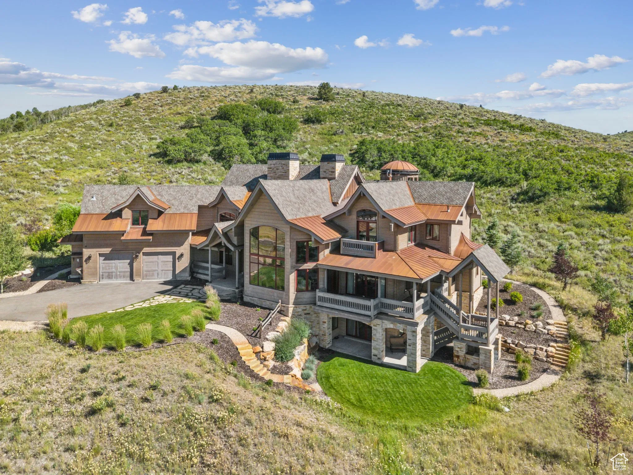 An Astronomer’s Dream Home- A European Masterpiece with a Private Observatory. If you’ve ever dreamed of exploring the stars from your own home, this is the place. This extraordinary Victory Ranch residence blends old-world European artistry with the awe of a private observatory, complete with a telescope and retractable dome roof. With handcrafted details including a 1,000 sq ft spa, gourmet kitchen, turret library, and panoramic views, this home is both imaginative and masterfully executed. A true one-of-one. Perched on 4+ acres, this architectural masterpiece overlooks the renowned Rees Jones-designed golf course. Designed with intention, this Honka home features custom pine timber from Finland. The construction is natural, sustainable, and free from synthetic insulation. Throughout the home, custom Venetian lighting highlights the exquisite craftsmanship. The living room boasts soaring vaulted ceilings and expansive windows that frame breathtaking views. At its heart is a one-of-a-kind four-sided fireplace adorned with hand-painted designs. The elegant kitchen is a chef’s dream, with custom walnut, maple, and glass cabinetry, a walnut countertop with iridescent blue inlay. Adding to its uniqueness is a custom Pechka and pizza oven, hand-built on-site. The extraordinary library is housed in a stone turret with curved walnut & maple doors and inlaid custom floors. Above it, a private observatory serves as the home’s crown jewel, equipped with a telescope & a retractable dome roof. The home features 5 luxurious suites, each with unique scenic views. Outdoor living is just as impressive, with a covered patio featuring a built-in grill and multiple balconies. A two-car garage and custom dog wash station complete the home. Victory Ranch is a gated community on over 6,250 pristine acres with 4 miles of private Upper Provo River access, offering a lifestyle of unmatched adventure and serenity.