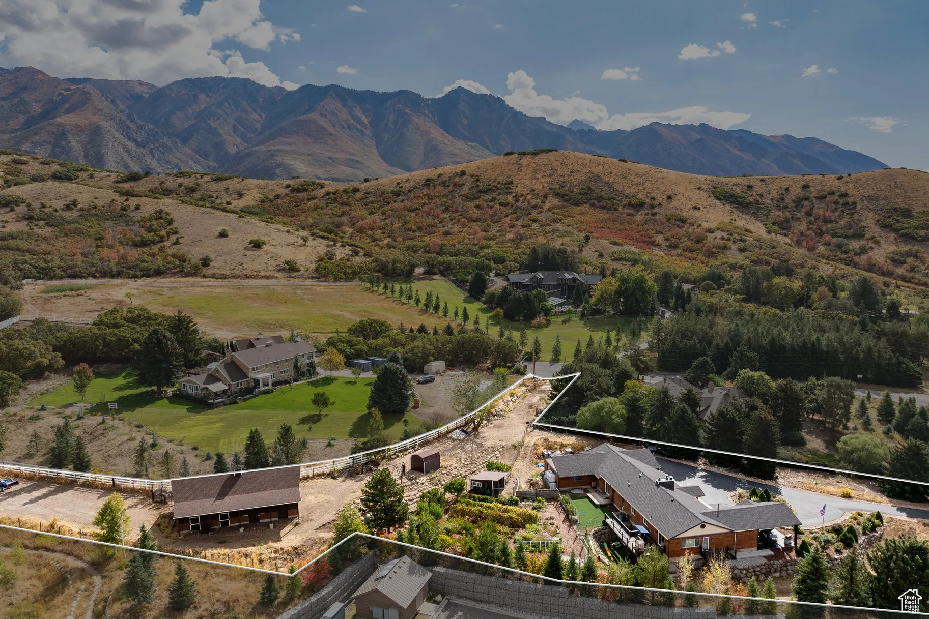 This exceptional 1.74-acre building lot sits adjacent to the highly sought-after 3 Falls Subdivision at the base of Lone Peak in Fort Canyon. Surrounded by thousands of acres of U.S. Forest Service land and expansive open space, the property offers endless opportunities for hiking, biking, and horseback riding right outside your door. With no HOA, animal rights, and a private well already on site, this lot provides both flexibility and convenience. Two separate entrances make it easy to store and access equipment, vehicles, or recreational toys. The grounds are beautifully enhanced with mature landscaping, including more than 30 established fruit trees and stately pine trees lining the perimeter. A well-maintained home currently sits on the property, ideal for rental income or comfortable living while you design and build your dream home.