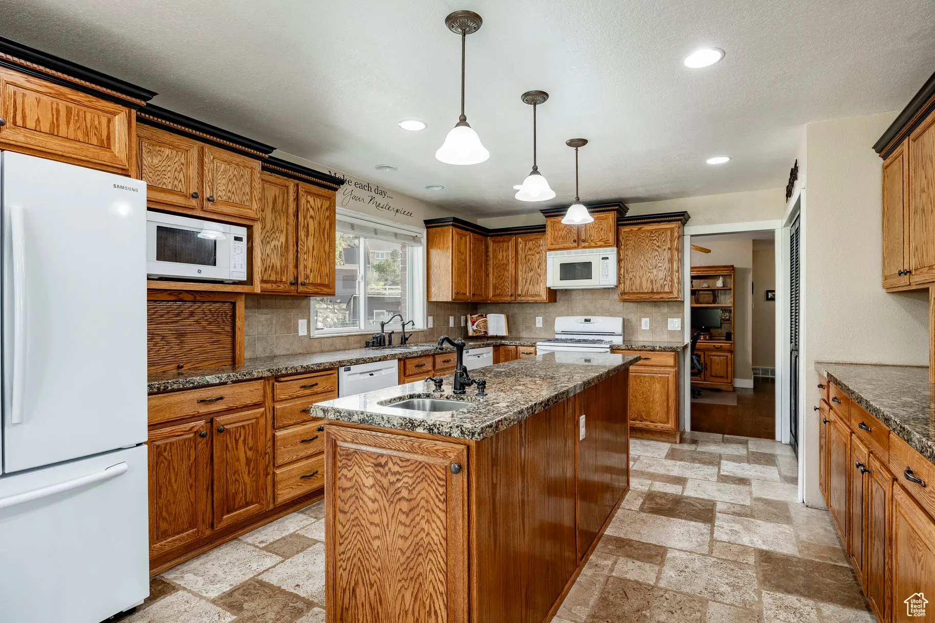- Disposal, Kitchen: Updated, Range/Oven: Free Stdng., Closet: Walk-In, Den/Office, Great Room, Range: Gas, Granite Countertops, Vaulted Ceilings, Gas Log, Oven: Gas, Oven: Double, Floor Drains, Bath: Primary