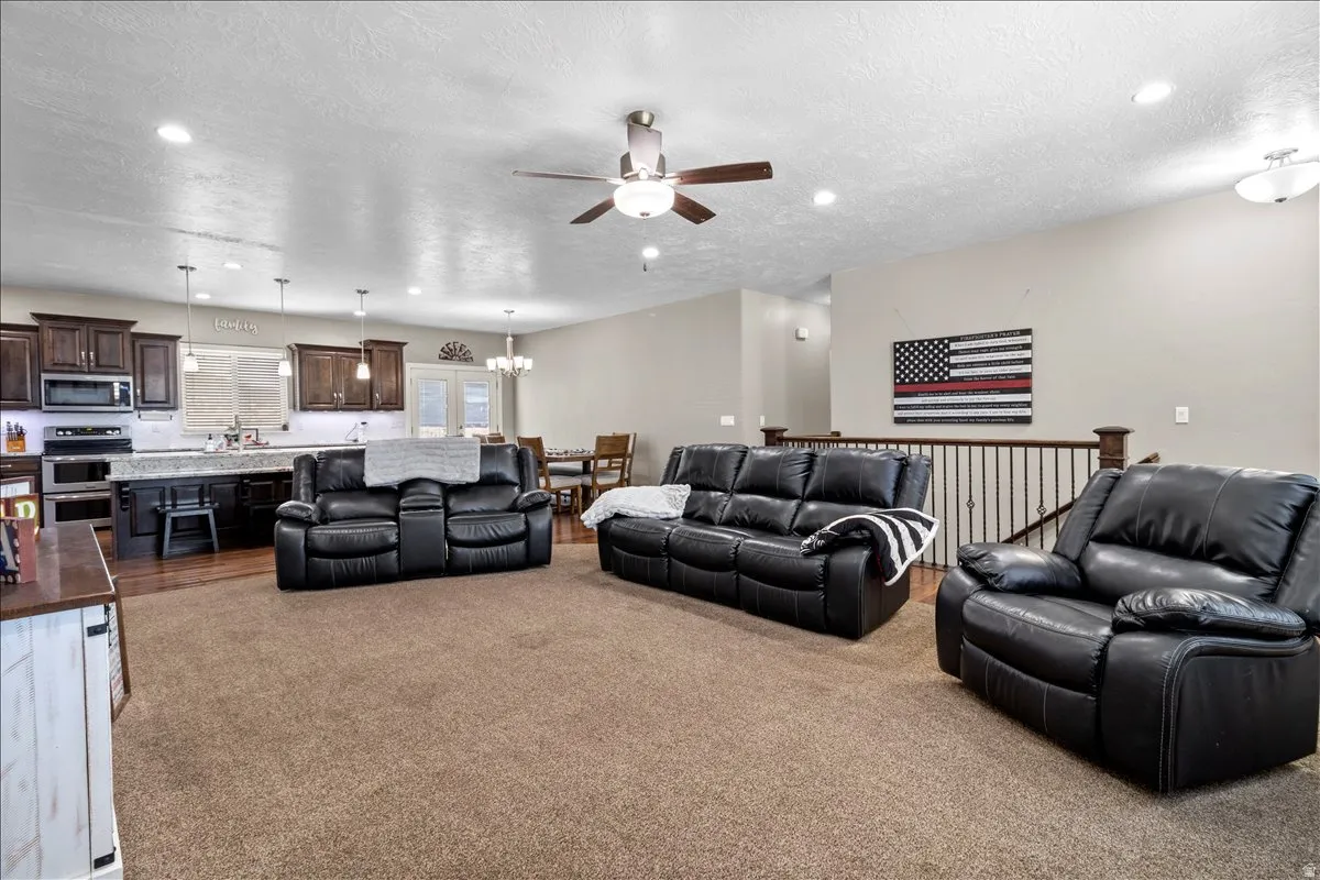 Welcome to this beautifully crafted all-brick home offering 3,600 sq ft of fully finished living space. Thoughtfully designed with comfort and versatility in mind, this spacious residence features 6 bedrooms, 3 bathrooms, and two large family areas-perfect for entertaining or everyday living. You’ll love the open-concept living, dining, and kitchen area that creates a bright, welcoming space at the heart of the home. Fully finished basement with 3 bedrooms and 1 bathroom, large family/game room and playhouse area. Generous storage throughout ensures everything has its place including overhead in the garage. Outside, enjoy a fully landscaped, fenced .53-acre yard, a covered patio for year-round enjoyment, and plenty of space to relax or play. Bring your toys-this home includes a graveled area for RV parking and a 10×12 shop with power and its own sub panel, perfect for hobbies, projects, or extra storage. Square footage figures are provided as a courtesy estimate only and were obtained from county records. Buyer is advised to obtain an independent measurement.