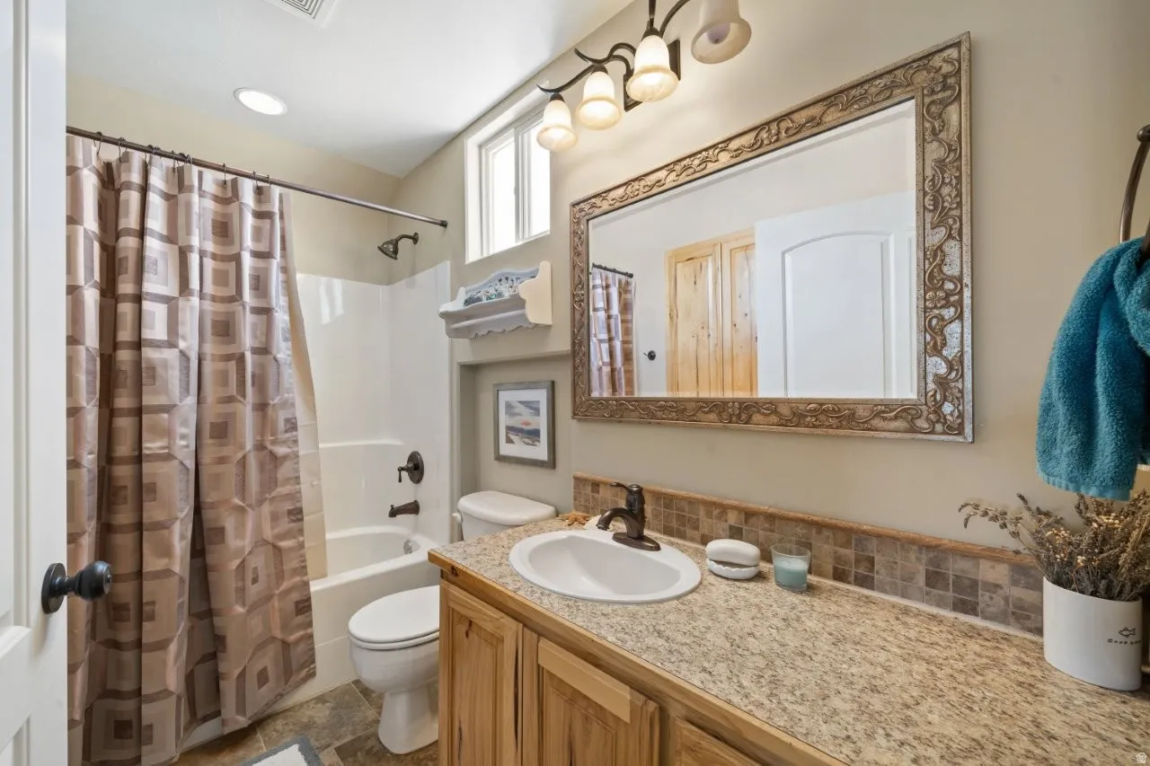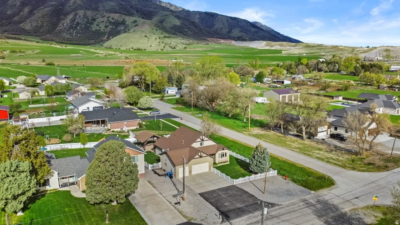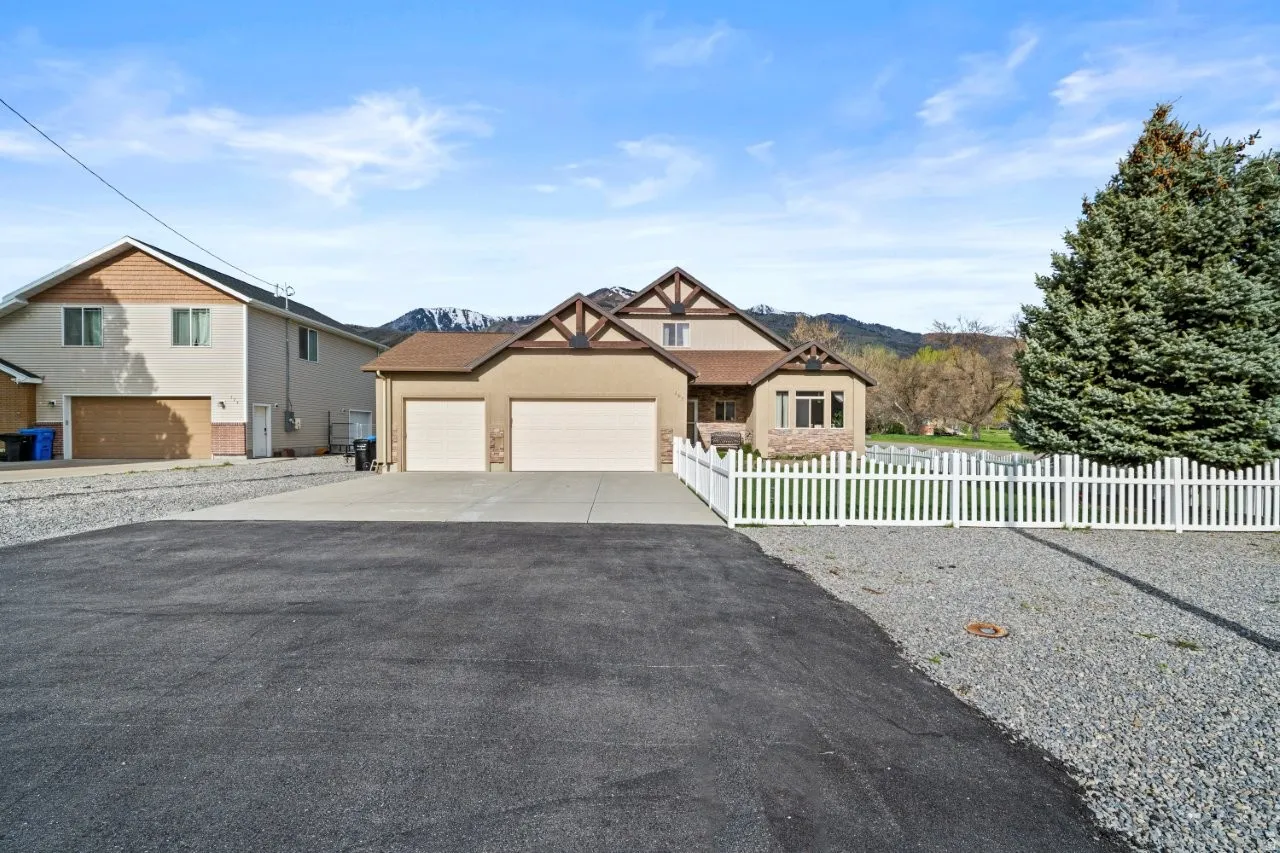 PATIO HOME WITH BONUS BEDROOM & BATH!! Located on a spacious .29-acre corner lot in Wellsville. Built in 2005, this 2,591 sq ft home offers 5 bedrooms and 3 bathrooms with stunning mountain views and full fenced. The main level is designed for true single-level living and features a welcoming foyer, a spacious family room, and a well-appointed kitchen with granite countertops, gas range, built-in oven, and adjacent dining area-perfect for everyday living and entertaining. The primary suite includes a walk-in closet and a private bath with separate tub and shower. Additional bedrooms provide flexibility for guests, a home office, or hobby space. The home features a mix of carpet and laminate flooring, along with double-pane windows and existing window coverings. Outdoor living is a highlight with a covered patio, flat and usable yard, mature landscaping, auto-fill sprinkler system, and open mountain views. The heated 3-car built-in garage offers ample storage with additional space above. Asphalt and concrete driveway with paved road access complete the exterior features. No HOA. Accessible features include 32″ wide doorways, ground-level entry, ramp access, grab bars, and convenient single-level living.
