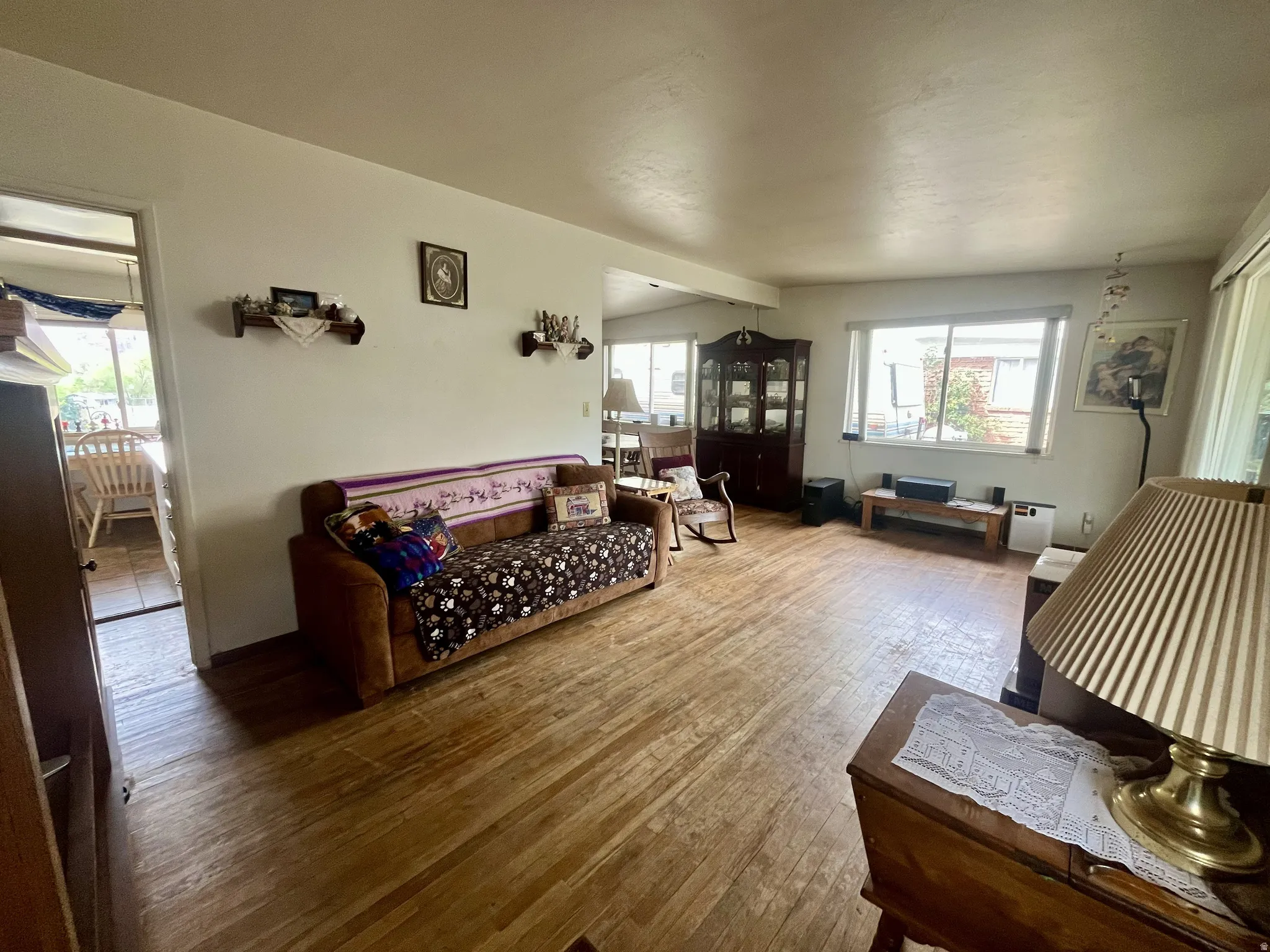 RETRO COTTAGE….READY TO MAKE YOUR OWN. This charming home is tucked in among towering Sycamore trees and features a spacious, covered front porch, lush grass, meandering paths and flowerbeds for your outdoor enjoyment. Inside you will find original oak hardwood floors, retro metal and wood cabinets, new kitchen island, new enlarged windows, and newer bathroom. The central heating/cooling systems are top of the line with Trane A/C, humidifier and gas forced air heat. Outside the kitchen you will find a huge attached, heated pantry/storage that provides plenty of space for your goods and extra appliances. The backyard features multiple storage spaces, an insulated workshop with cabinets, workbench, power, and A/C. This home is set with 110 power hookup and RV cleanout in the driveway. Make this cozy retro cottage your new home! All info is deemed reliable, but buyer to verify all.