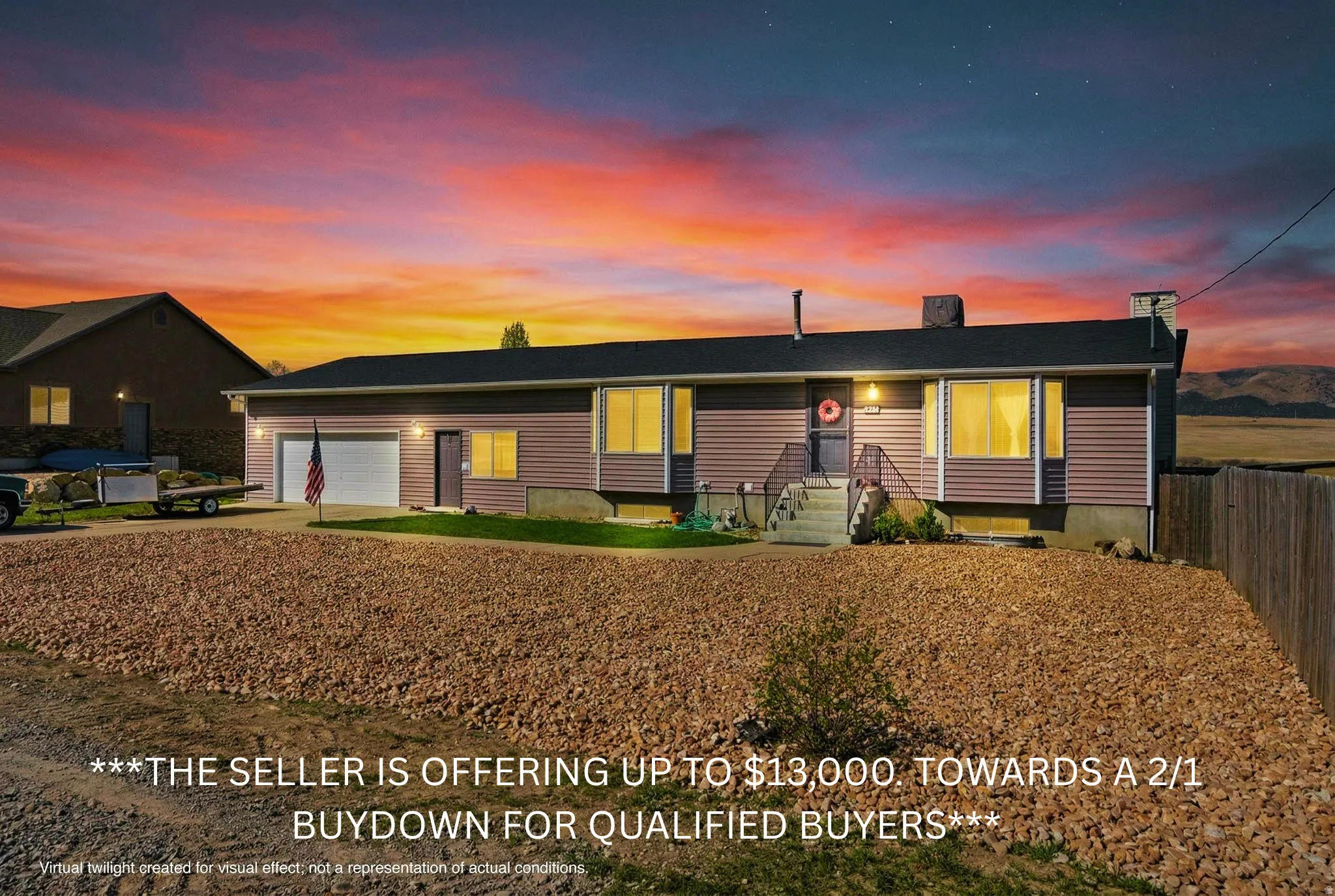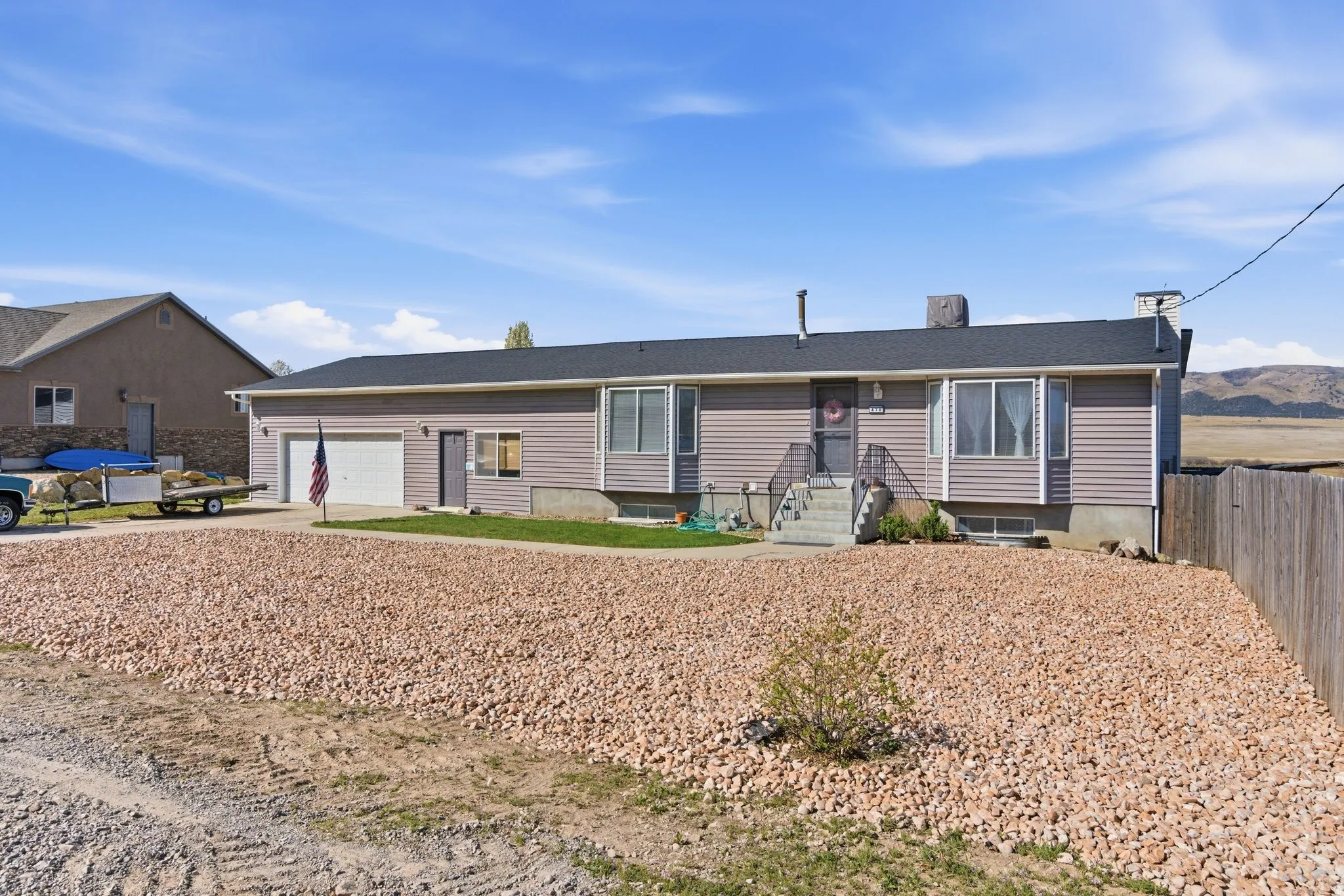 - Road: Paved, View: Mountain, Fenced: Full, Terrain: Grad Slope, View: Valley