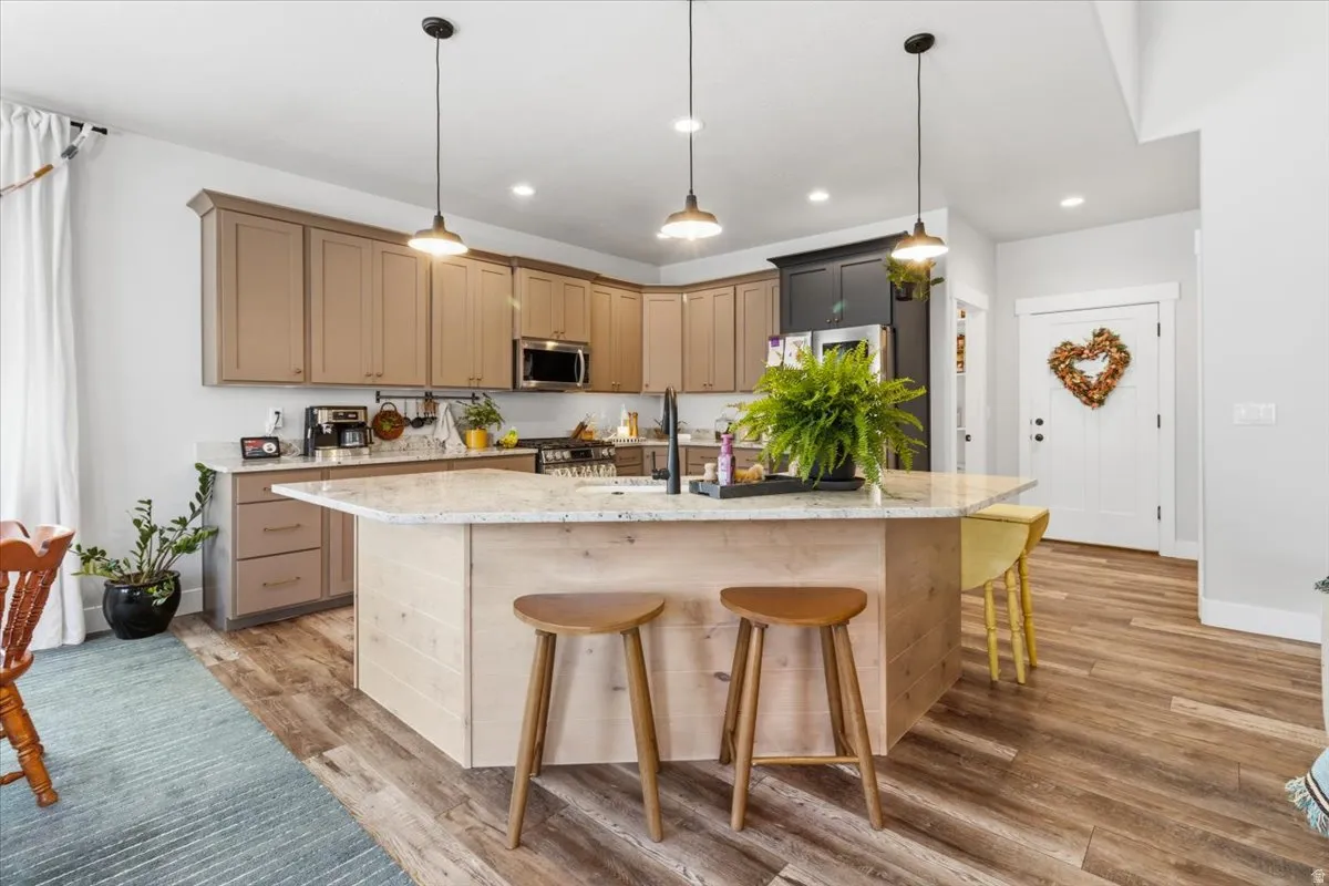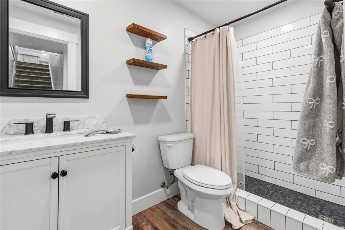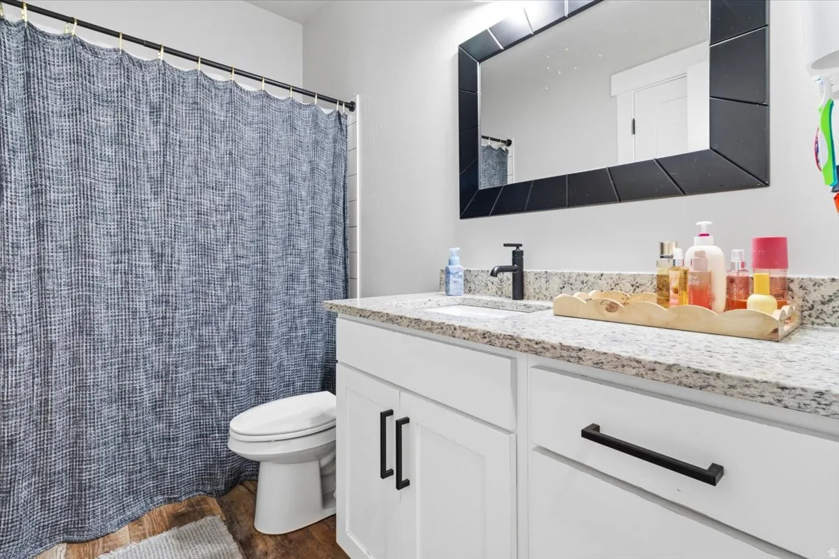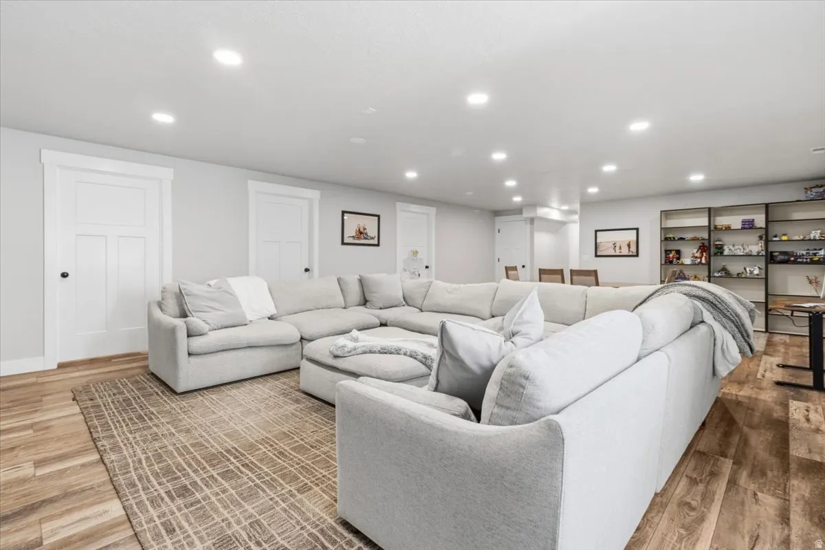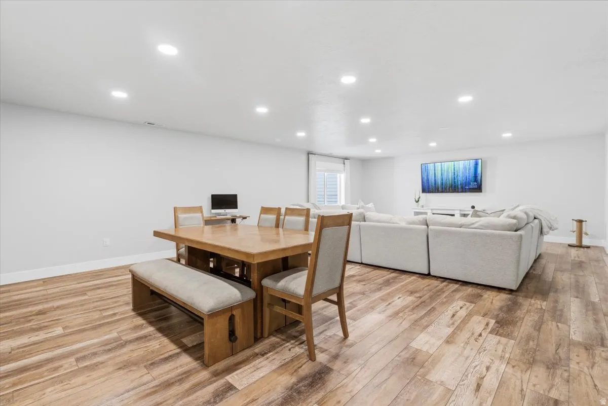 This home offers exceptional space, functionality, and thoughtful design throughout. Upon entry, you’re welcomed by an open floor plan with vaulted ceilings, creating a bright and inviting atmosphere. The main living area features beautiful LVP flooring and flows seamlessly into a stunning kitchen complete with a large pantry-perfect for everyday living and entertaining. The primary suite includes a newly remodeled bathroom, offering updated finishes and a fresh, modern feel. The fully finished, custom basement significantly expands the living space, offering an additional four bedrooms and one bathroom, for a total of seven bedrooms and three bathrooms. The lower level also includes a spacious game room/family room, dedicated toy room, and a second laundry area for added convenience. Outside, the property is beautifully landscaped with a backyard designed for enjoyment, featuring a large patio area, an attractive block retaining wall, and a 8-foot privacy fence. A standout feature is the 1,000 sq ft shop, designed to match the home, offering two garage doors for additional parking, workspace, and abundant storage. Square footage figures are provided as a courtesy estimate only and were obtained from seller records. Buyer is advised to obtain an independent measurement.