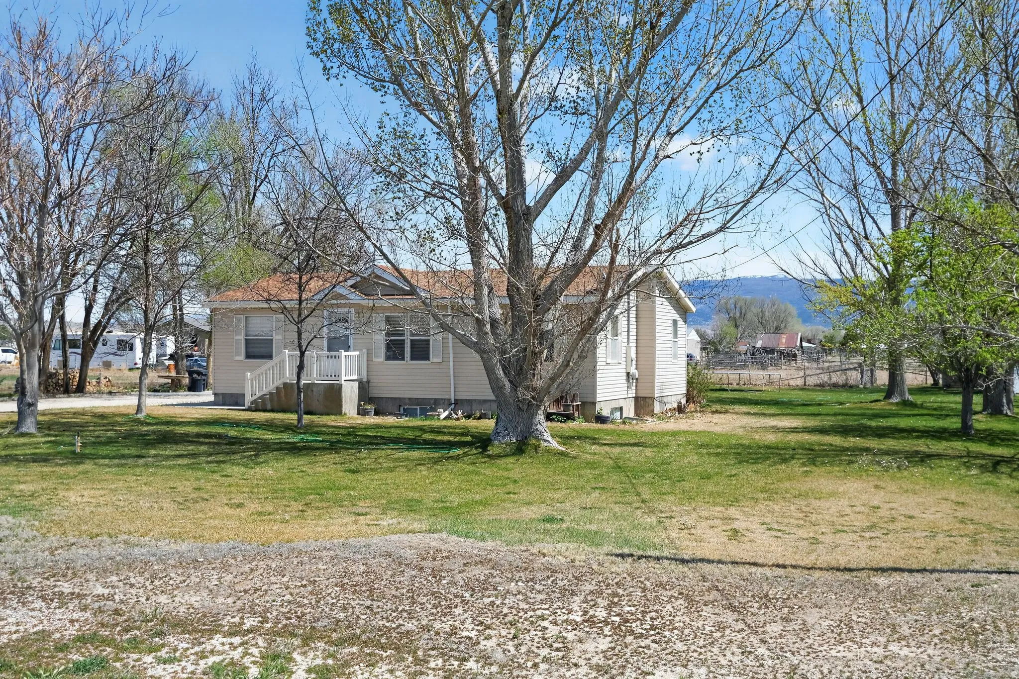 Discover peaceful country living in this spacious 5-bedroom, 3-bath rambler on 1.14 acres in quiet Centerfield, just minutes from Gunnison. Enjoy main-floor living, two large family rooms, and an oversized 2-car garage plus a 450 sq ft shop. Enjoy peace of mind with newer roof, AC, and furnace. Relax under towering shade trees, watch glowing sunsets, enjoy horse-friendly pasture, and relish true country living.
